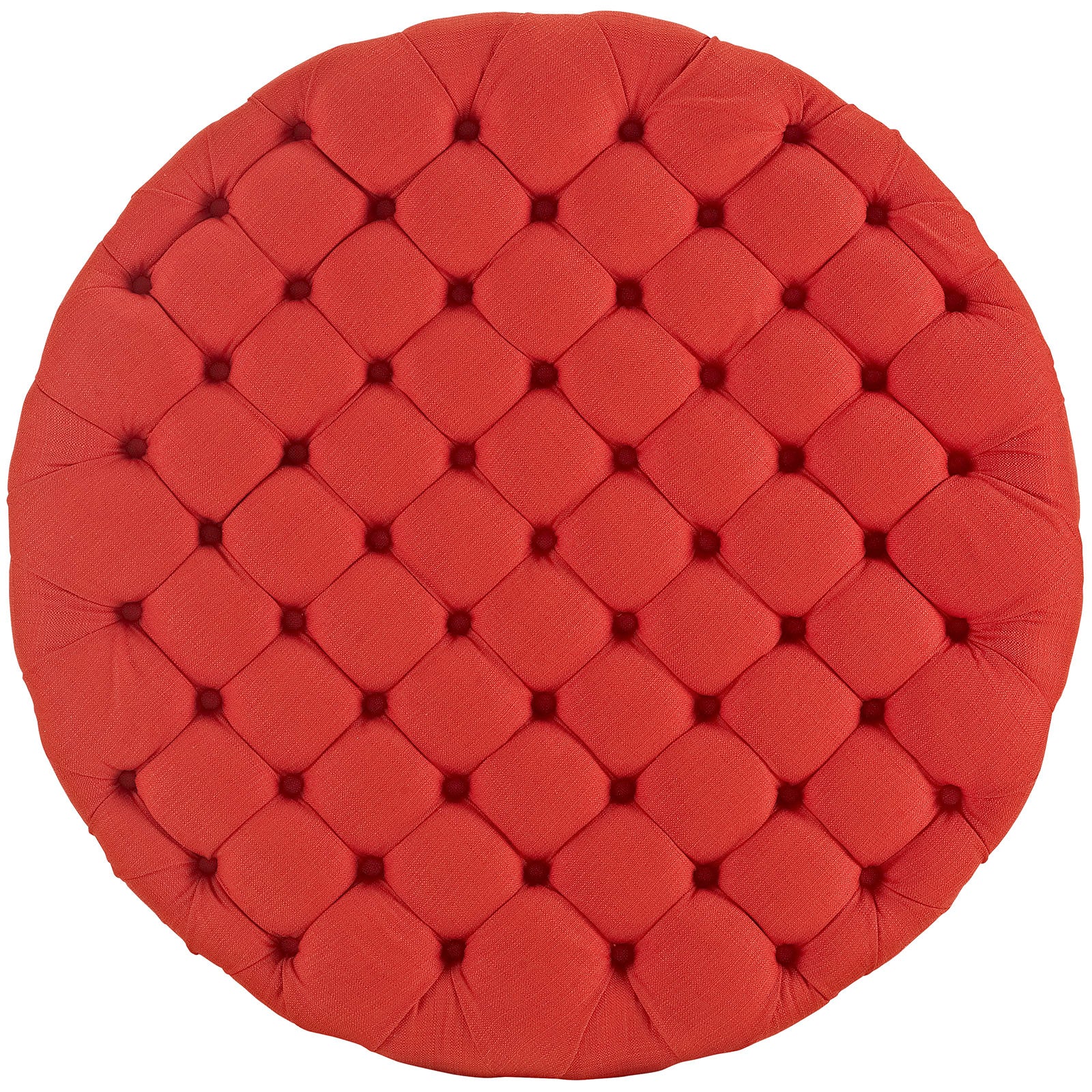 Inspire your décor with the Amour Round Ottoman. Fashionably chic with a refreshing look, Amour features a luxuriously tufted round design with dense foam padding, fine fabric upholstery, and non-marking black plastic legs. Rest your feet, display some favorite magazines, and accent your bedroom, living room, lounge or meeting area décor with this stylish well-designed addition to your modern home or office.