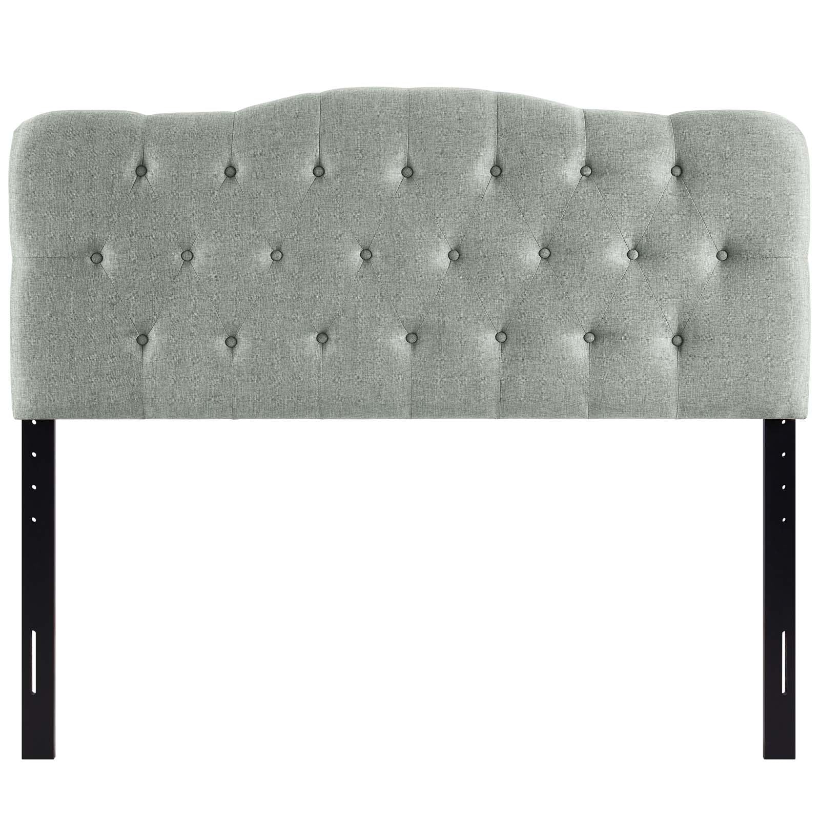 Instill soft tones and a meaningful design with the Modway Annabel Button Tufted Linen Fabric Upholstered Queen Headboard. Deep inset buttons adorn this magnificent centerpiece for your bedroom décor. Annabel Queen Headboard is made from fiberboard, plywood, and fine linen fabric upholstery for a construction that is both lightweight and long-lasting. Carefully crafted with flowing contours and a richly rewarding design, this striking headboard for queen beds transforms your sleeping space decor.