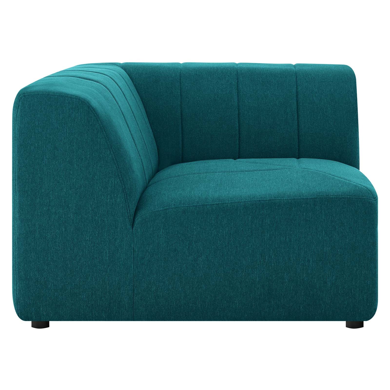 Indulge in comfort and relaxation by creating a custom living room and lounge area with the Bartlett Upholstered Fabric Corner Chair. Featuring subtle channel tufting, rounded corners, and soft polyester fabric upholstery, this sectional sofa corner chair brings retro modern style and contemporary allure to your living space. Dense foam padding and a pocket coil spring system in the cushions offer a luxe seating experience with premium support and comfort. With a sturdy frame crafted from solid wood and plywood, this living room chair features modular connectors to keep each sectional sofa piece secure and non-marking foot caps to protect flooring. Chair Weight Capacity: 331 lbs.