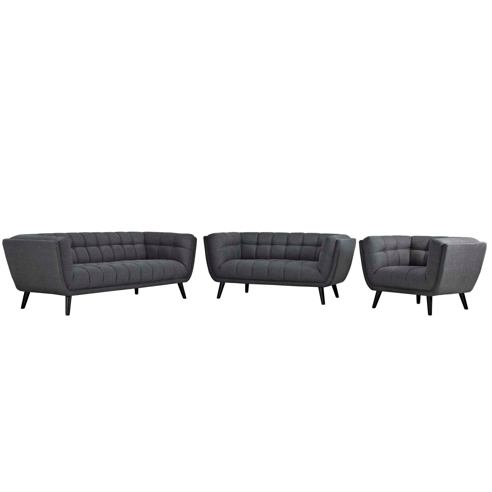 Bestow 3 Piece Upholstered Fabric Sofa Loveseat and Armchair Set