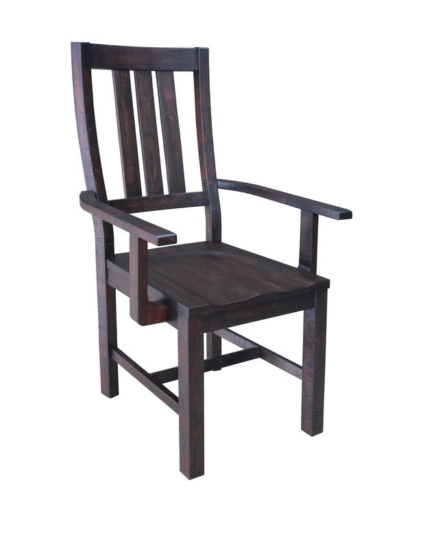 Bold lines and eye-catching angles create the classic silhouette of this wooden dining chair. This handsome armchair is crafted of solid mahogany wood for exceptional durability. A rich, vintage wood finish gives it an air of classic flair. Sturdy armrests and a ladder style back provide plenty of comfortable support. Coaster has truly outdone themselves with this perfect blend of quality and style.