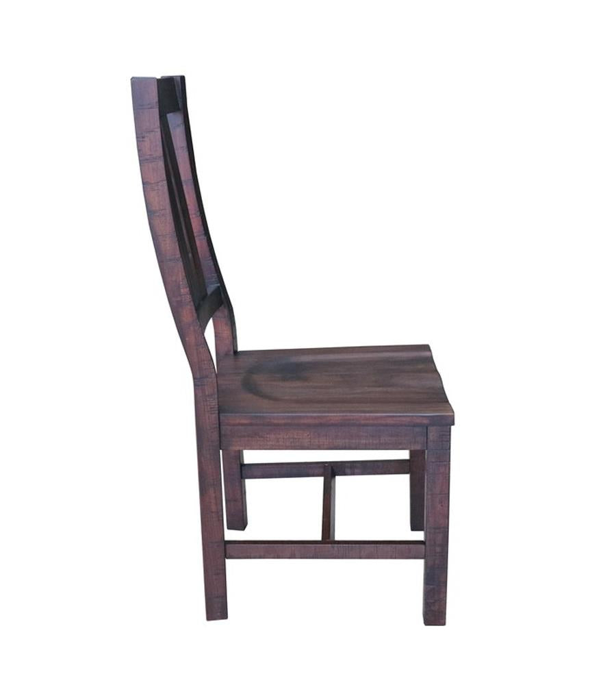 Create an aesthetic of no-nonsense style with this beautiful, wooden side chair. Crafted of solid mahogany in a vintage wood finish, this piece really warms up a room. This chair is comfortably crafted with a saddled seat that lets you settle right in. The classic, slat style back adds just the right touch of country charm. Exclusive to Coaster, this durable piece is made with quality and style in mind.