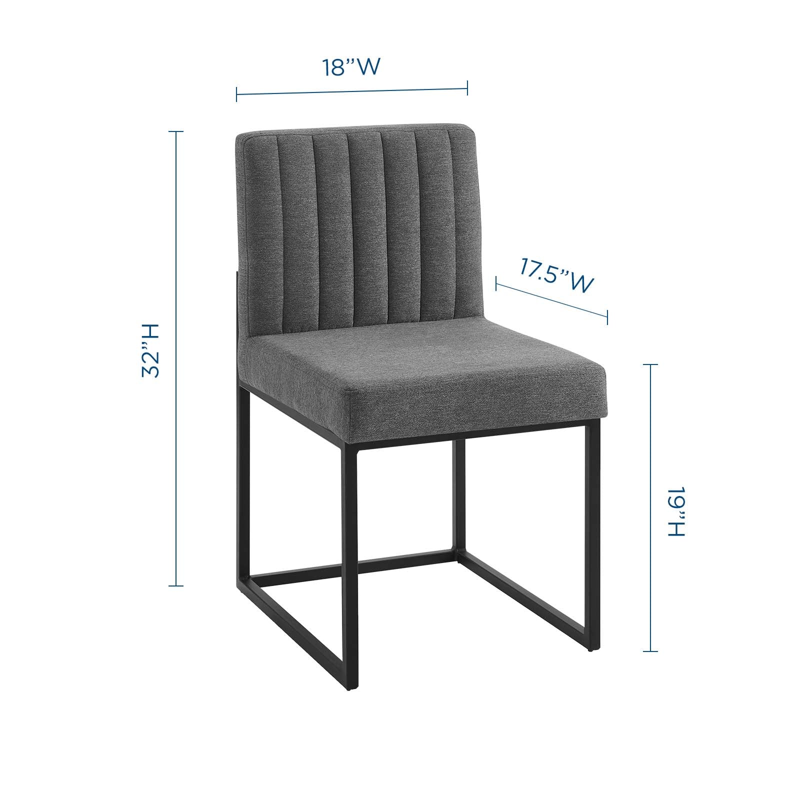 When your dining room decor calls for a striking statement, usher in the bold design of the Carriage Channel Tufted Upholstered Fabric Sled Base Dining Chair. Crisp lines flow with the matte black stainless steel sled base of this dining accent chair. Soft and durable polyester fabric covers the dense foam padding while vertical channel tufting details add depth to this glam deco dining chair. The Carriage Dining Side Chair will enhance any decor scheme in your dining room, living room, lounge room or office. Chair Weight Capacity: 331 lbs. Assembly Required.
