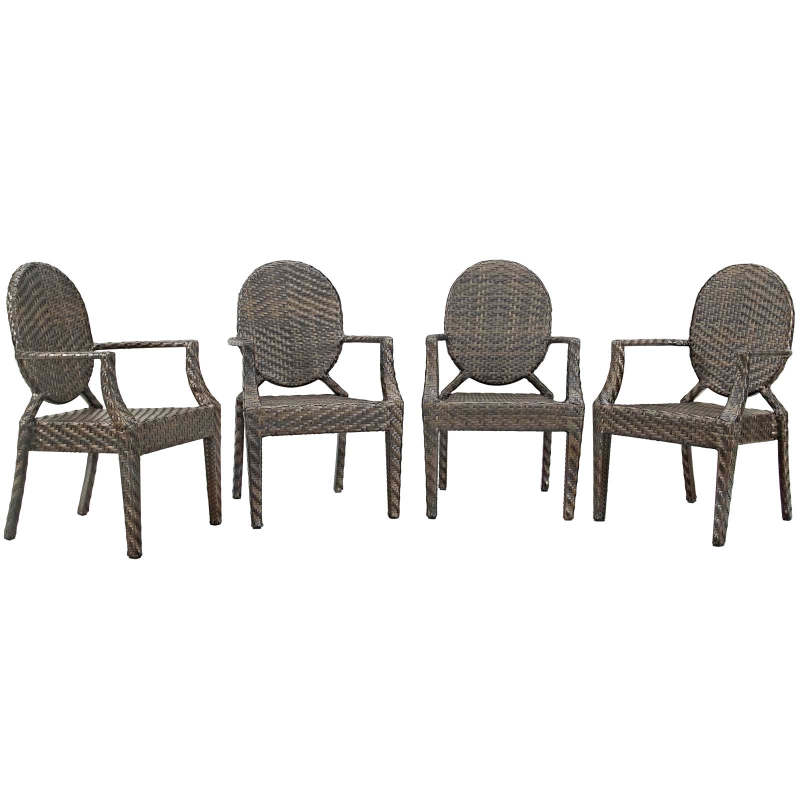 This Casper Outdoor Patio Rattan Dining Arm Chair Set of 4 will revolutionize your patio arrangement with functional grace and artistic harmony. Made of weather tested dual-gray synthetic rattan, Casper Outdoor Dining Chairs will become the favorite resting point for scenic admiration and memorable moments.
