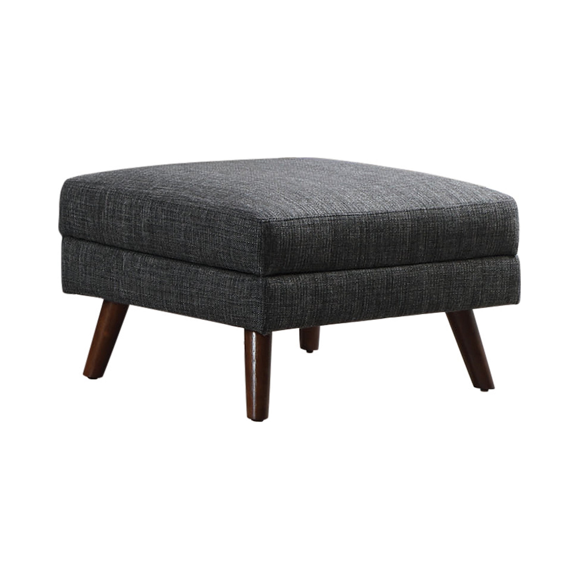 Display your exquisite style with this ottoman. Your own mid-century modern respite includes angled tapered legs, showcasing the iconic style. The linen upholstery provides comfort and class on this piece. Take advantage of the clean lines and dark grey fabric color for easy matching. Can be used in conjunction with other furniture or as a standalone piece.