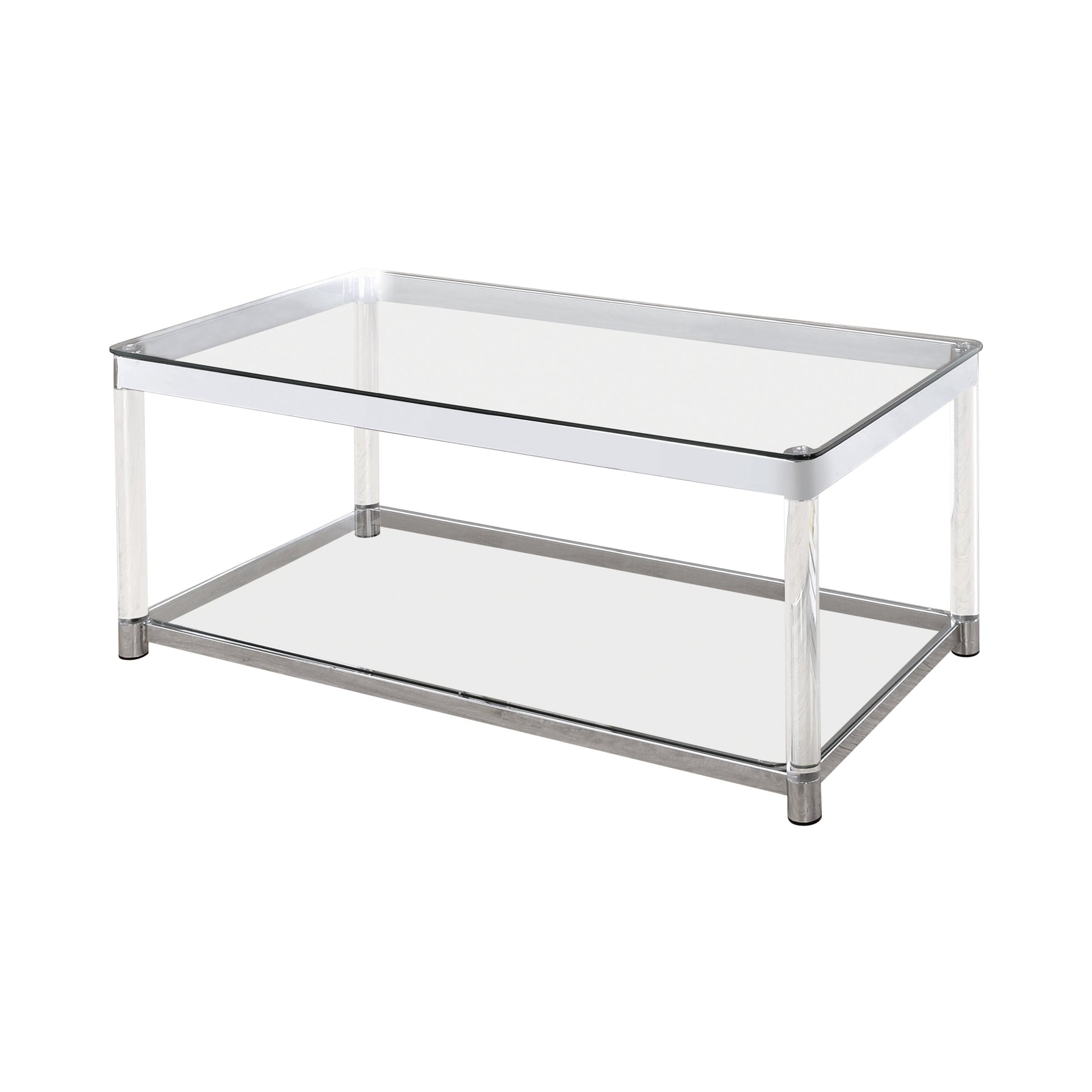 Complete a stylish contemporary space with this glamorous coffee table. Create an elongated look with the sleek and rounded acrylic legs. The top and built-in storage shelf offer ample room for display, complete with chrome features. Go all-in on a chic minimalist theme with the bold metallic presence. Craft a stylish visual with the versatile display.
