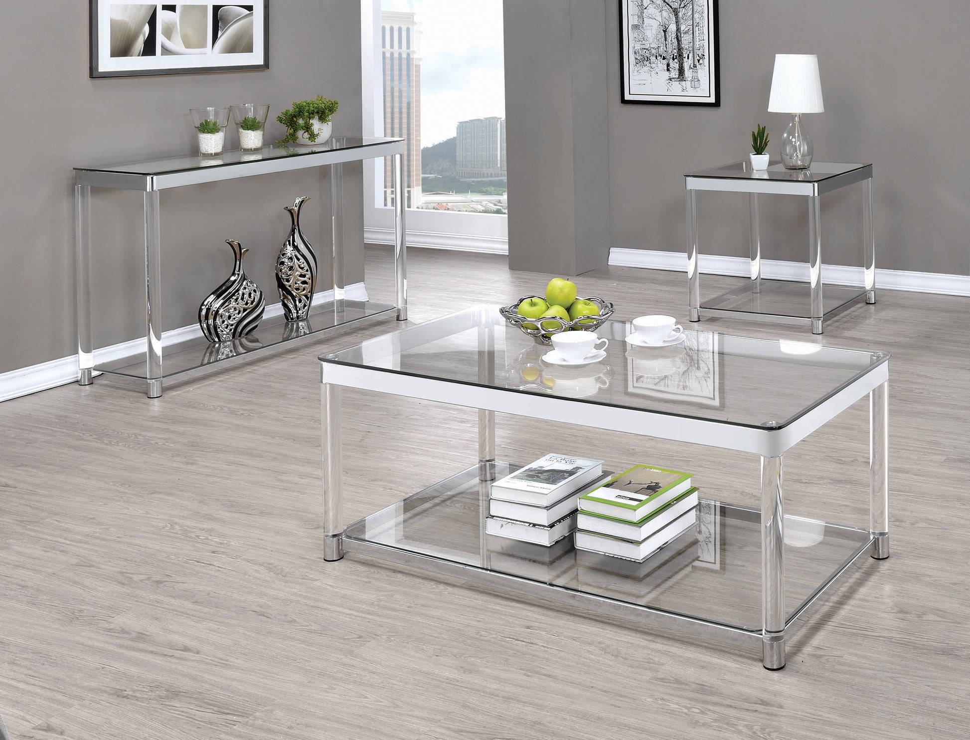 Claude Sofa Table with Lower Shelf Chrome and Clear