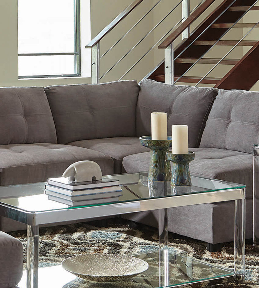 Whether tucked neatly into a corner or placed between two sofas, this corner chair is endlessly versatile. Sleek and compact, it easily fits into rooms of all shapes and sizes. Its dove grey, microfiber upholstery boasts a soft, luxe texture with the added bonus of easy cleaning. Its thick, padded seat offers unparalleled comfort and support. Sleek, dark-colored legs and subtly tufted cushions round out its elegant look.