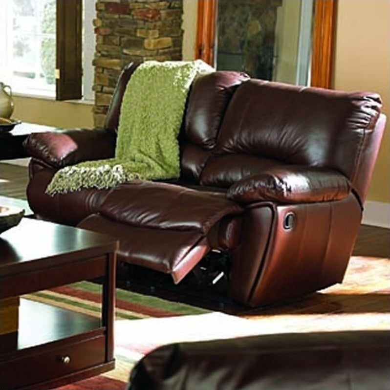 Comfortable and sleek, this stunning motion loveseat is great for a small living room. Full of stitched details, the loveseat offers an elegant feel. Constructed with relaxation in mind, the plush cushioning is showcased in kidney support backs. Relax with the built-in recliners on each seat. Warm up any space with the rich chocolate fabric.
