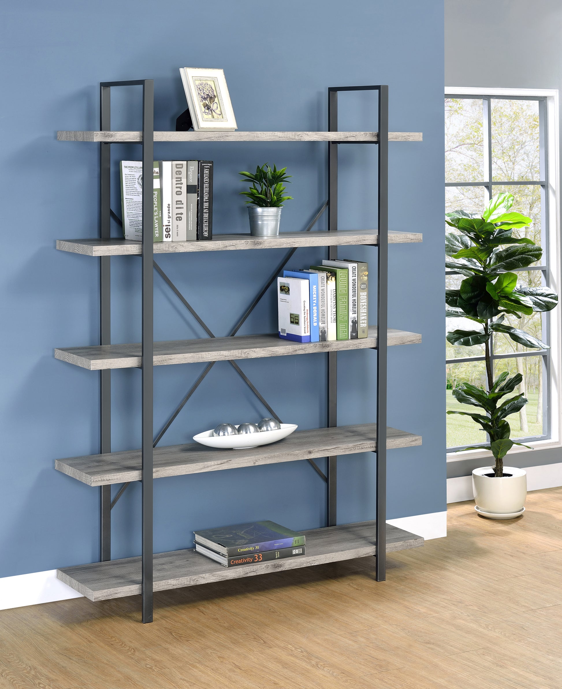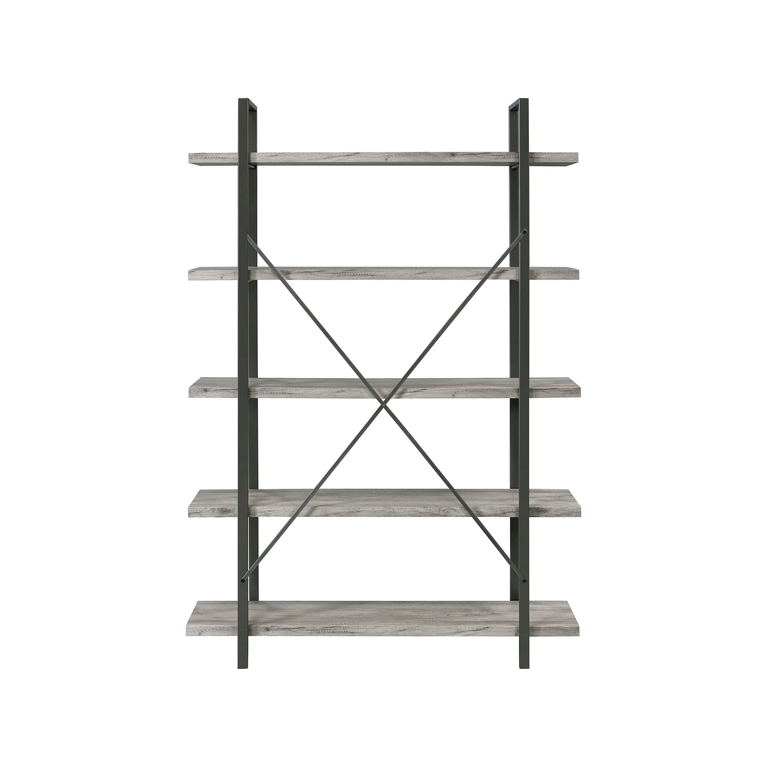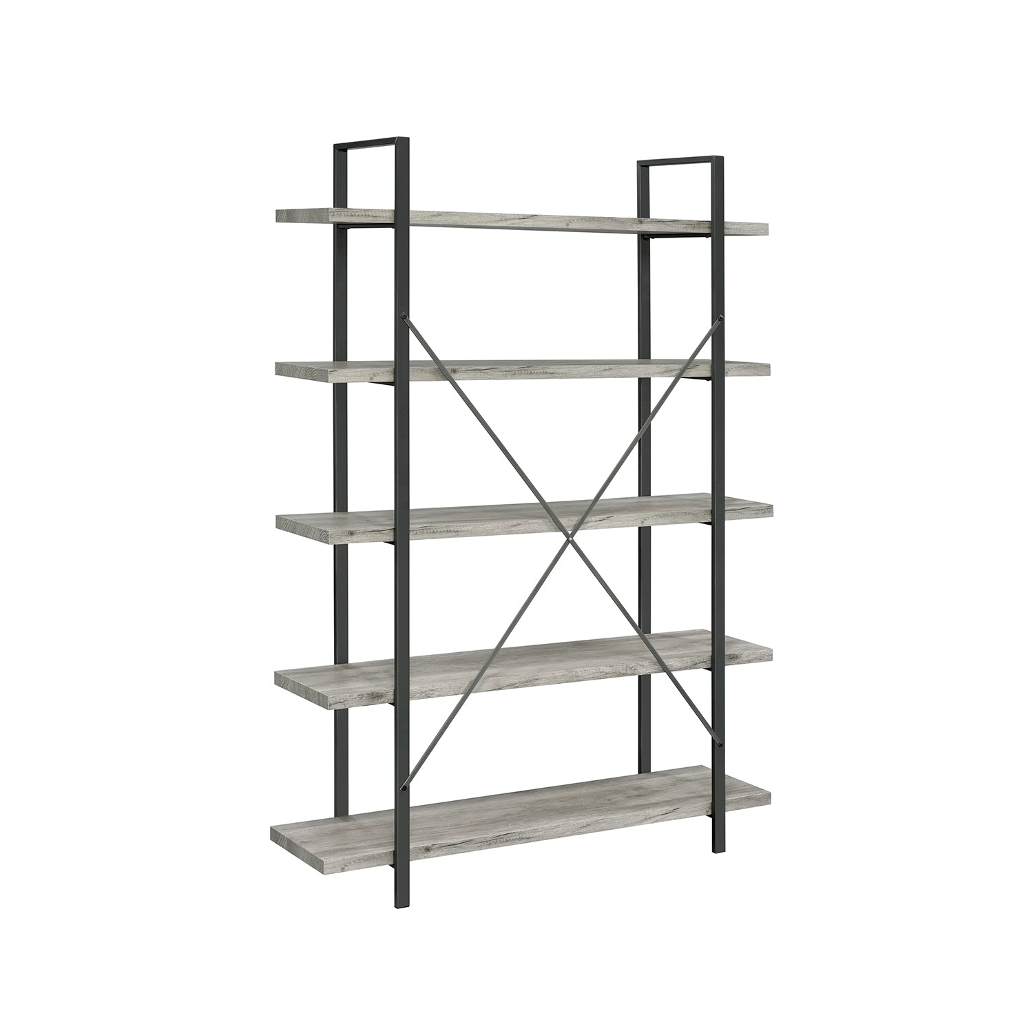Cole 5-Shelf Bookcase Grey Driftwood and Gunmetal