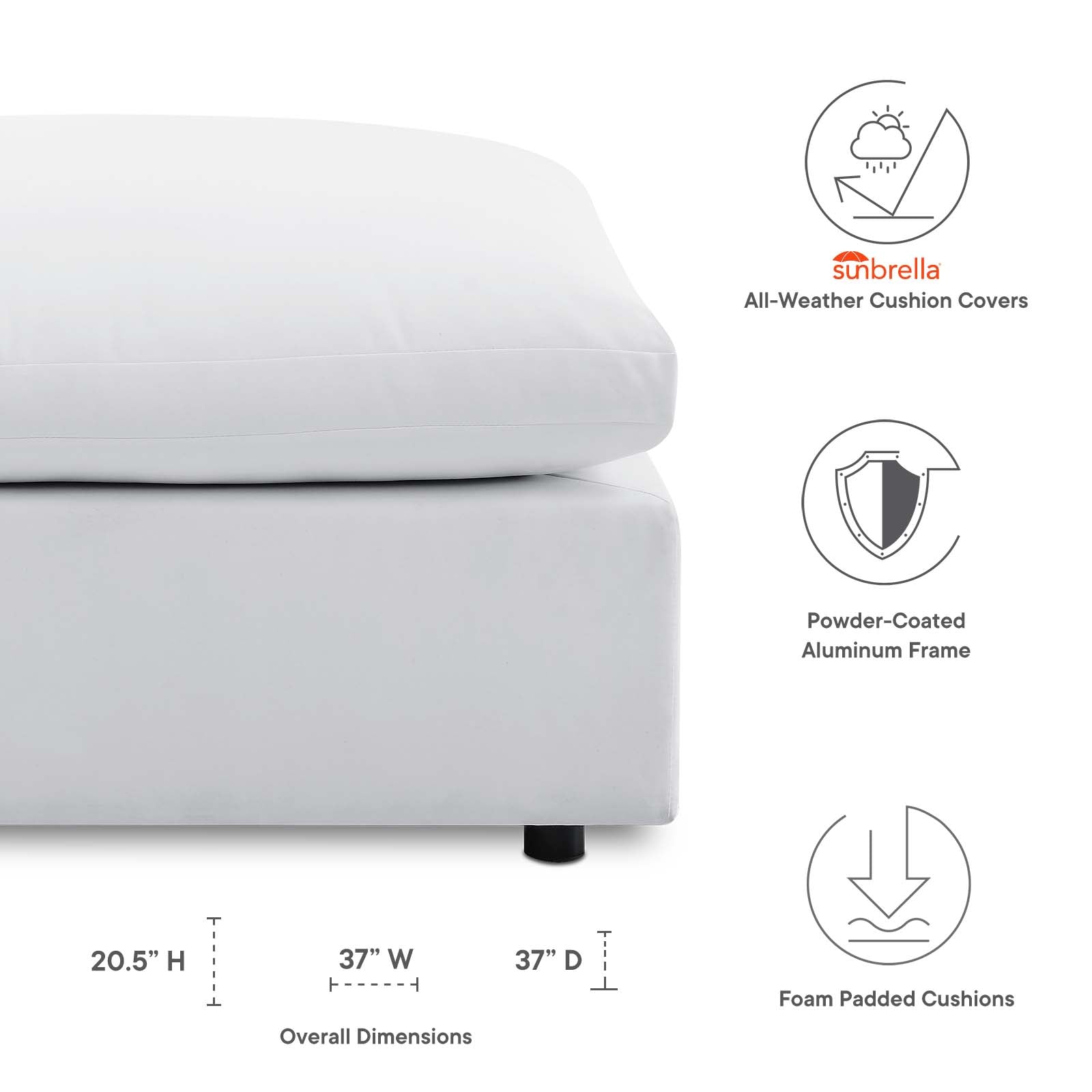 A haven for cozy relaxation right in your own backyard, Commix features plush comfort, a clean-lined design, and a spacious profile that makes an attractive statement on the porch, patio, or by the poolside. Made for sprawling out in the sun or curling up with a good book, this patio ottoman features generously padded cushions covered in water-repellent and UV-resistant Sunbrella® fabric covers making them ideal for your outdoor space. This outdoor ottoman features an all-weather construction with a powder-coated aluminum frame and non-marking foot caps to protect flooring surfaces. Beckoning guests to sit and stay a while, the Commix Outdoor Patio Collection is perfect for al fresco entertaining or lounging amidst warm weather. Ottoman Weight Capacity: 300 lbs.