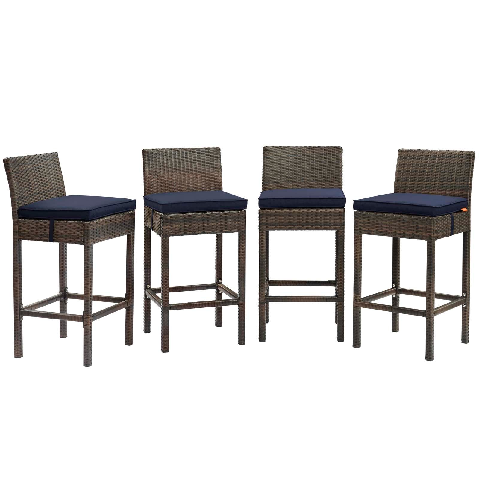 Conduit Bar Stool Outdoor Patio Wicker Rattan Set of 4