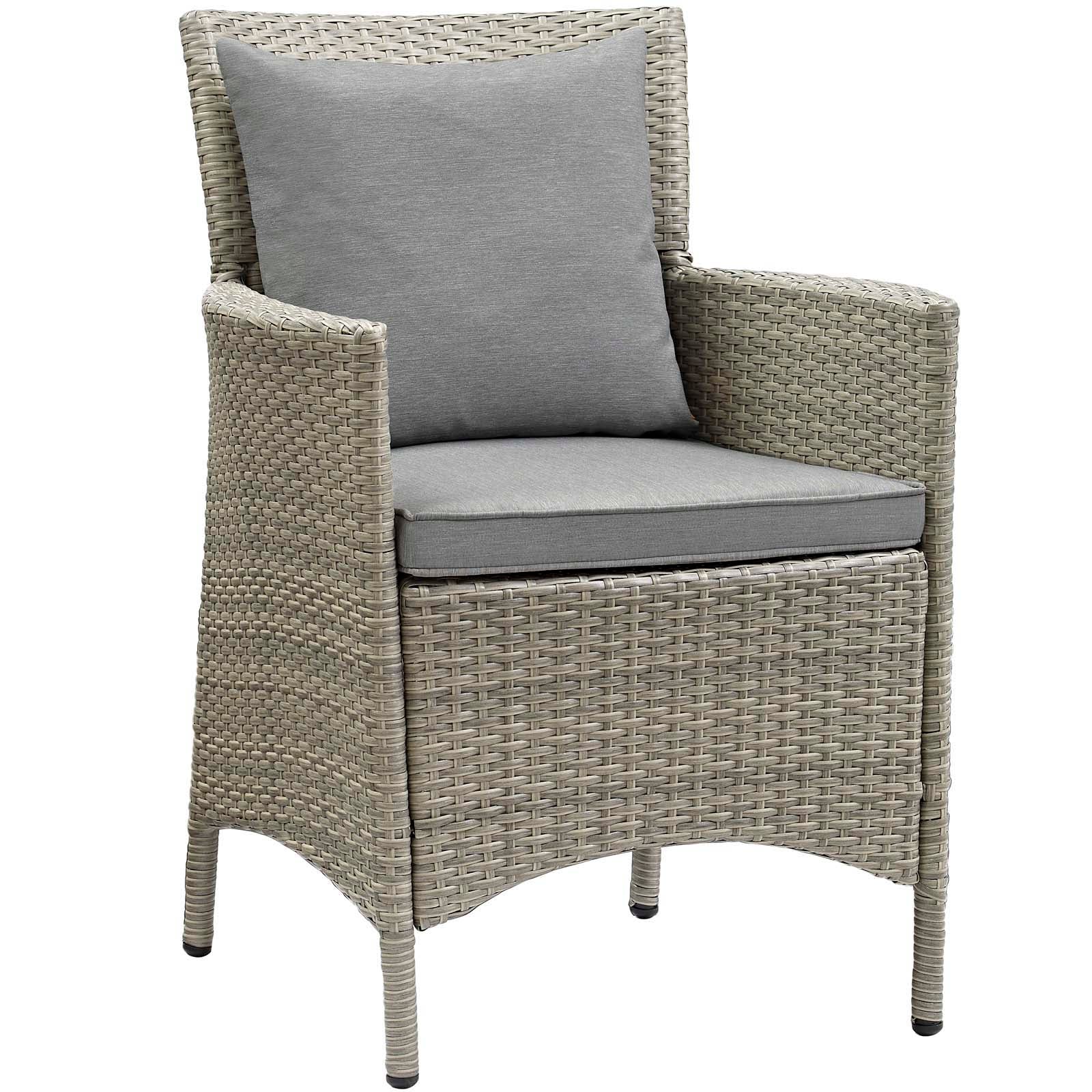 Refresh your alfresco space with the Conduit Outdoor Patio Dining Arm Chair Set of 2. Bringing transitional style with contemporary modern flair to any outdoor area, Conduit Outdoor Dining Arm Chairs feature powder-coated aluminum frames wrapped in synthetic UV-resistant wicker rattan. Foam padded cushions and waterproof covers offer a comfortable seat while dining or entertaining. All-weather and long lasting, this versatile outdoor dining chair creates a serene setting for your morning tea, sunny lunch, sunset cocktail, and everything in between.