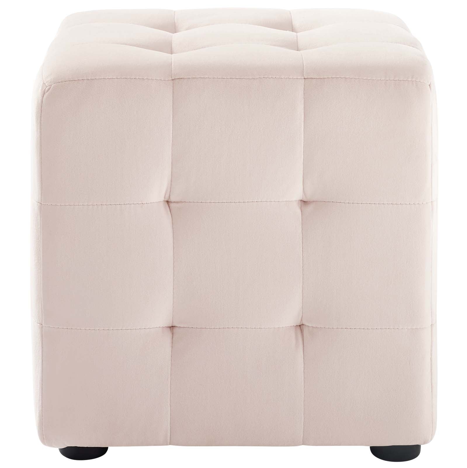 Accent your home decor with the Contour Performance Velvet Ottoman. Cube-shaped with button tufting details, Contour is solidly constructed with a plywood frame covered in dense foam padding with performance velvet upholstery. This tufted ottoman comes with soft and durable stain-resistant fabric, non-marking foot caps, and can support up 441 pounds. Perfect for the living room, lounge room, entryway, dorm room, bedroom, or home office, Contour is a versatile accent piece that also serves as a footrest or extra seat. Comes fully assembled.