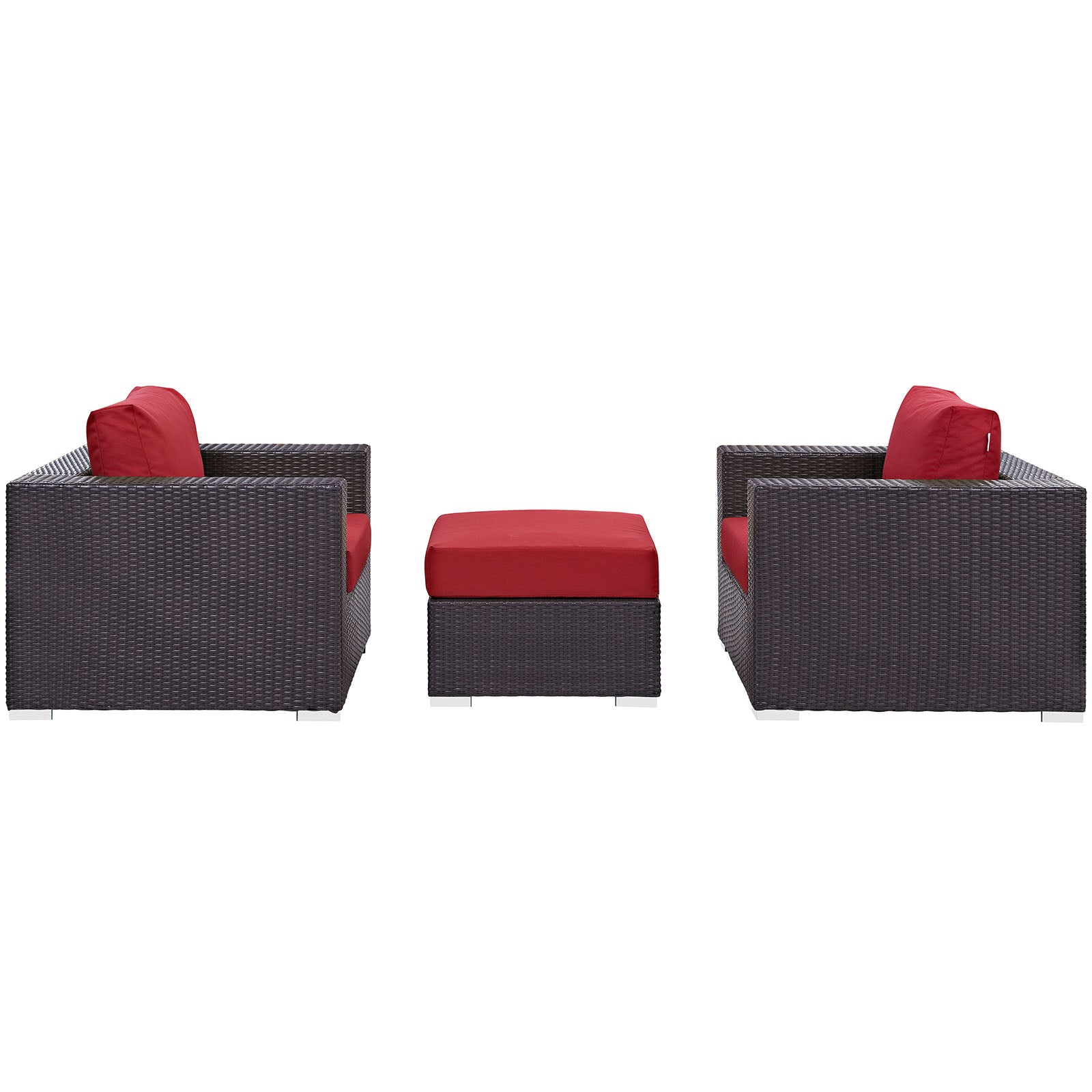 Gather stages of sensitivity with the Convene Outdoor Sectional series. Made with a synthetic rattan weave and a powder-coated aluminum frame, Convene is a versatile outdoor furniture set that shifts and combines according to the spontaneous needs of the moment. Outfitted with all-weather fabric cushions, leave a positive impression on friends and family while enhancing your patio, backyard, or poolside repast in this series of palpable distinction. This installment of the series is an Outdoor Patio Sectional Sofa Set.