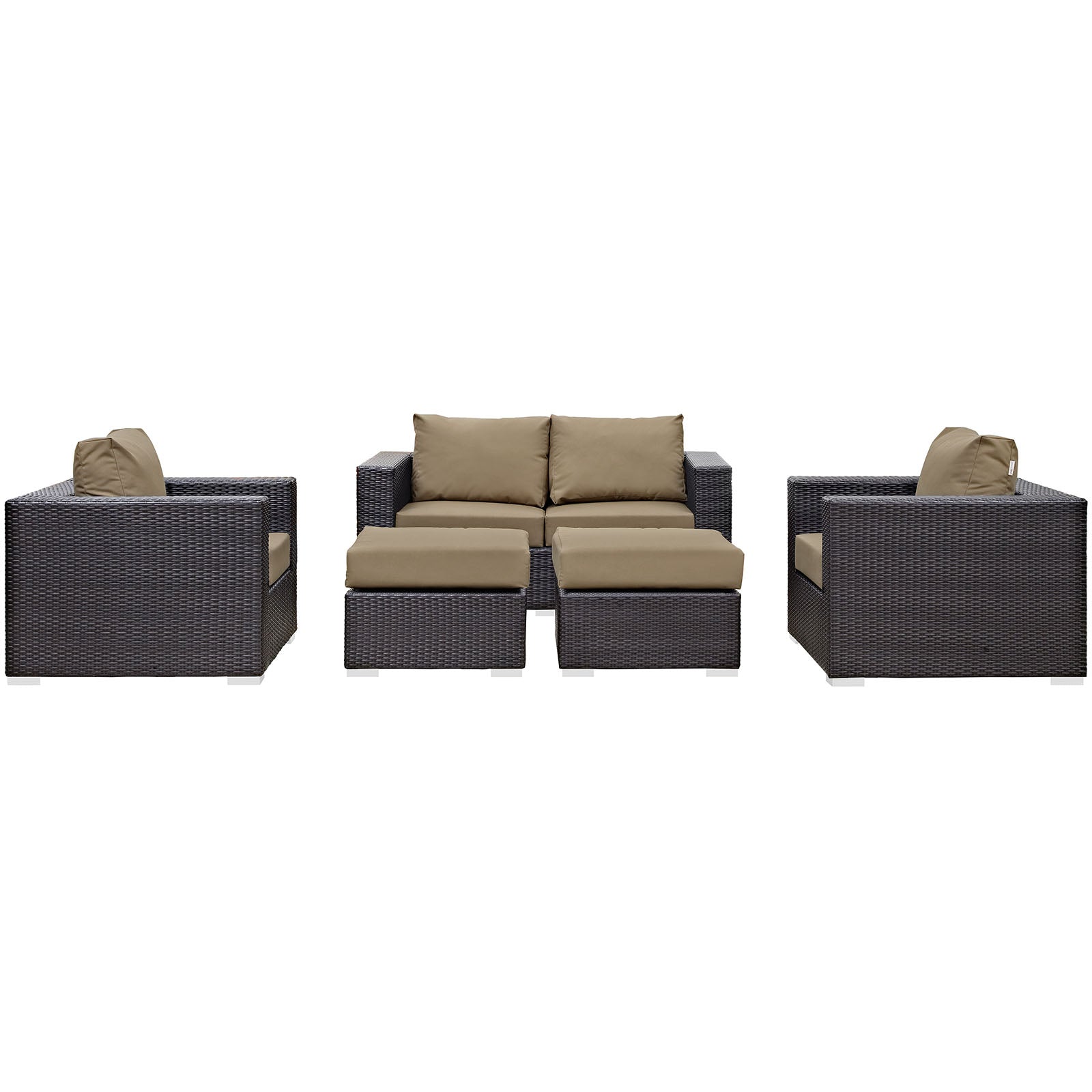 Gather stages of sensitivity with the Convene Outdoor Sectional series. Made with a synthetic rattan weave and a powder-coated aluminum frame, Convene is a versatile outdoor furniture set that shifts and combines according to the spontaneous needs of the moment. Outfitted with all-weather fabric cushions, leave a positive impression on friends and family while enhancing your patio, backyard, or poolside repast in this series of palpable distinction. This installment of the series is an Outdoor Patio Sectional Sofa Set.