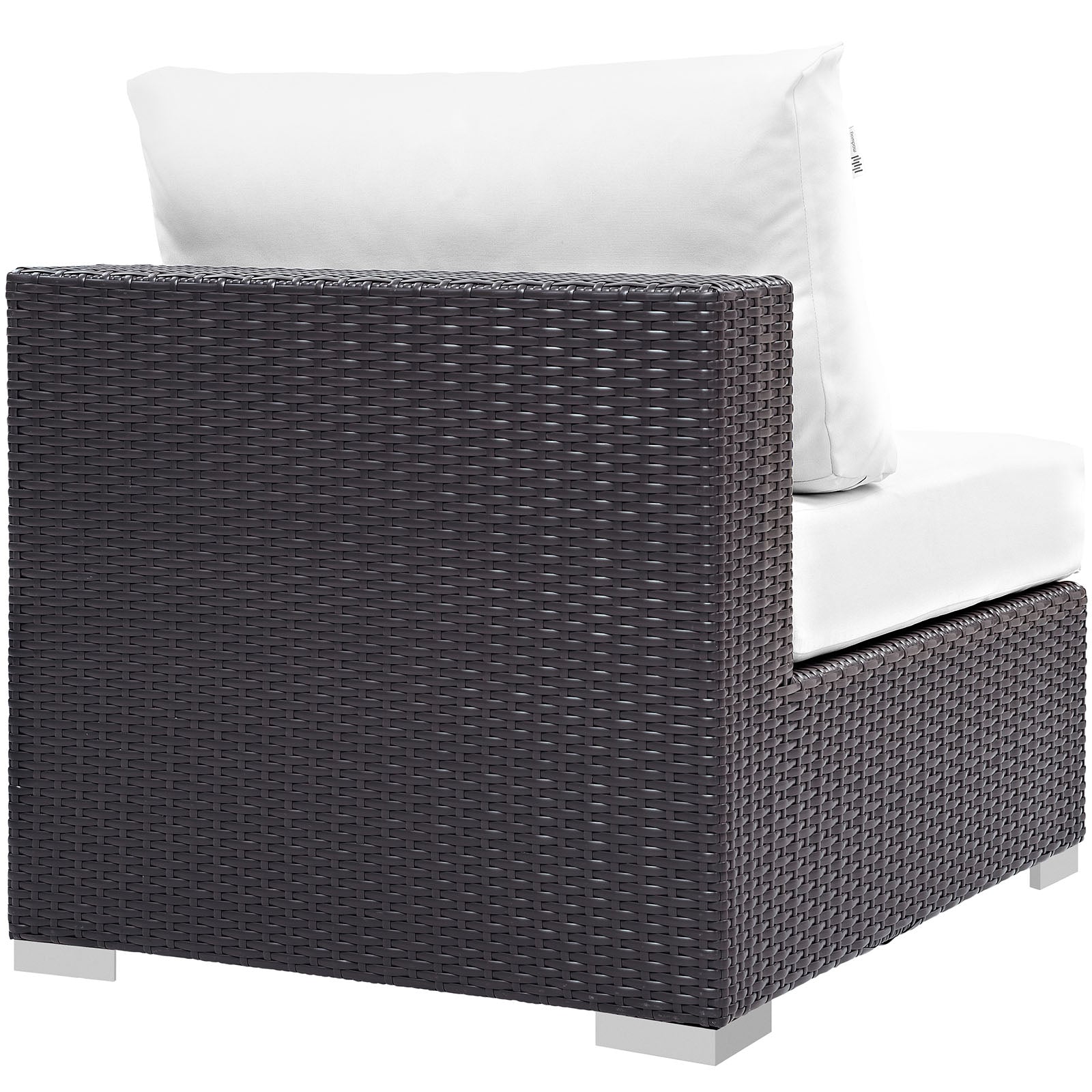 Gather stages of sensitivity with the Convene Outdoor Sectional series. Made with a synthetic rattan weave and a powder-coated aluminum frame, Convene is a versatile armless patio chair from an outdoor collection that shifts and combines according to the spontaneous needs of the moment. Outfitted with all-weather fabric cushions, Convene Outdoor Deck Chair leaves a positive impression on friends and family while enhancing your patio, backyard, or poolside repast in this series of palpable distinction. This installment of the series is an Outdoor Patio Armless Chair.