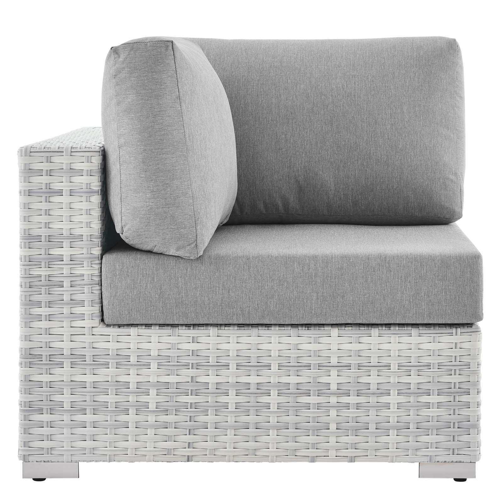 Gather stages of sensitivity with the Convene Outdoor Sectional series. Made with a synthetic rattan weave and a powder-coated aluminum frame, Convene is a versatile corner armchair from an outdoor collection that shifts and combines according to the spontaneous needs of the moment. Outfitted with all-weather fabric cushions, the Convene Corner Chair leaves a positive impression on friends and family while enhancing your patio, backyard, or poolside retreat with palpable distinction.