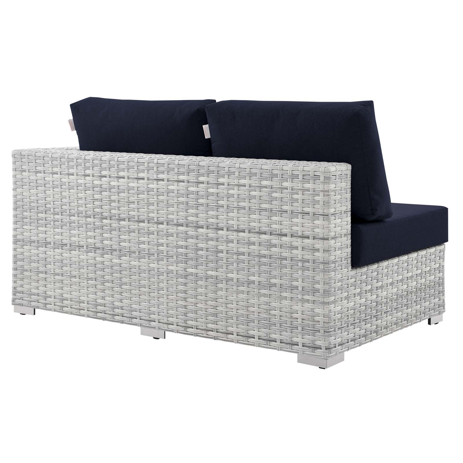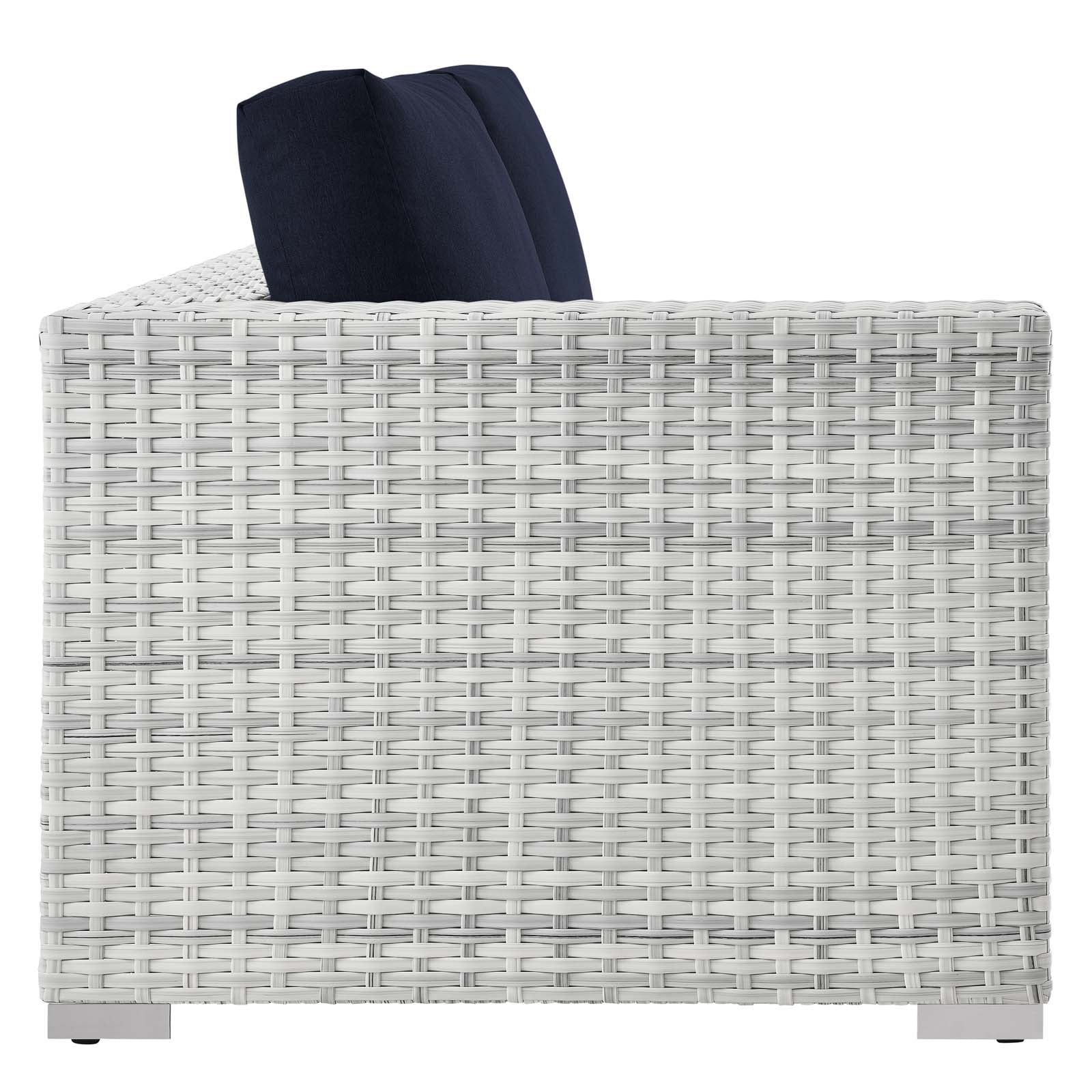 Gather stages of sensitivity with the Convene outdoor sectional series. Made with a synthetic rattan weave and a powder-coated aluminum frame, Convene is a versatile left-arm loveseat from an outdoor collection that shifts and combines according to the spontaneous needs of the moment. Outfitted with all-weather fabric cushions, the Convene Left-Arm Loveseat leaves a positive impression on friends and family while enhancing your patio, backyard, or poolside retreat with palpable distinction.