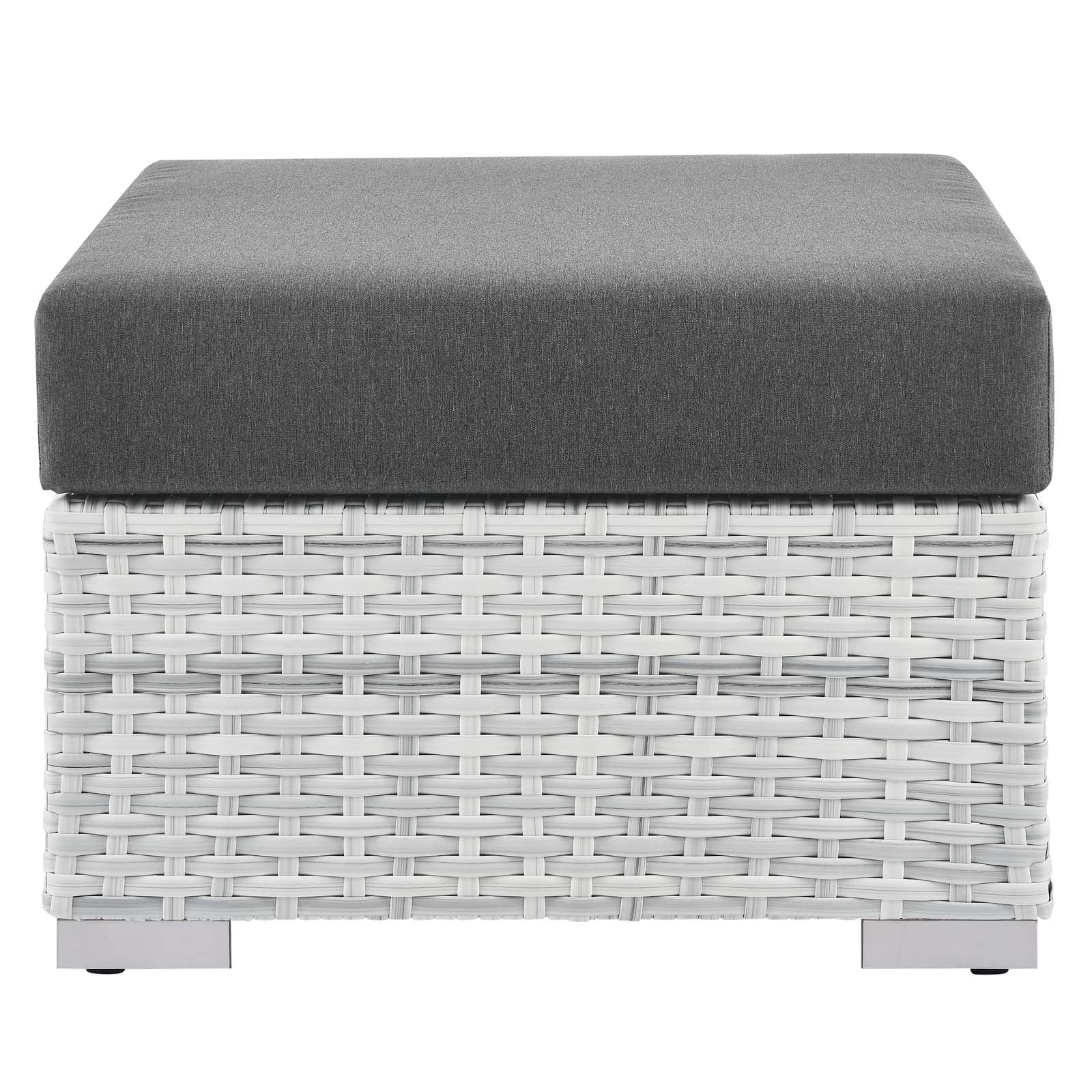 Gather stages of sensitivity with the Convene Outdoor Sectional series. Made with a synthetic rattan weave and a powder-coated aluminum frame, Convene is a versatile square patio ottoman from an outdoor collection that shifts and combines according to the spontaneous needs of the moment. Outfitted with all-weather fabric cushions, the Convene Outdoor Ottoman leaves a positive impression on friends and family while enhancing your patio, backyard, or poolside retreat with palpable distinction.