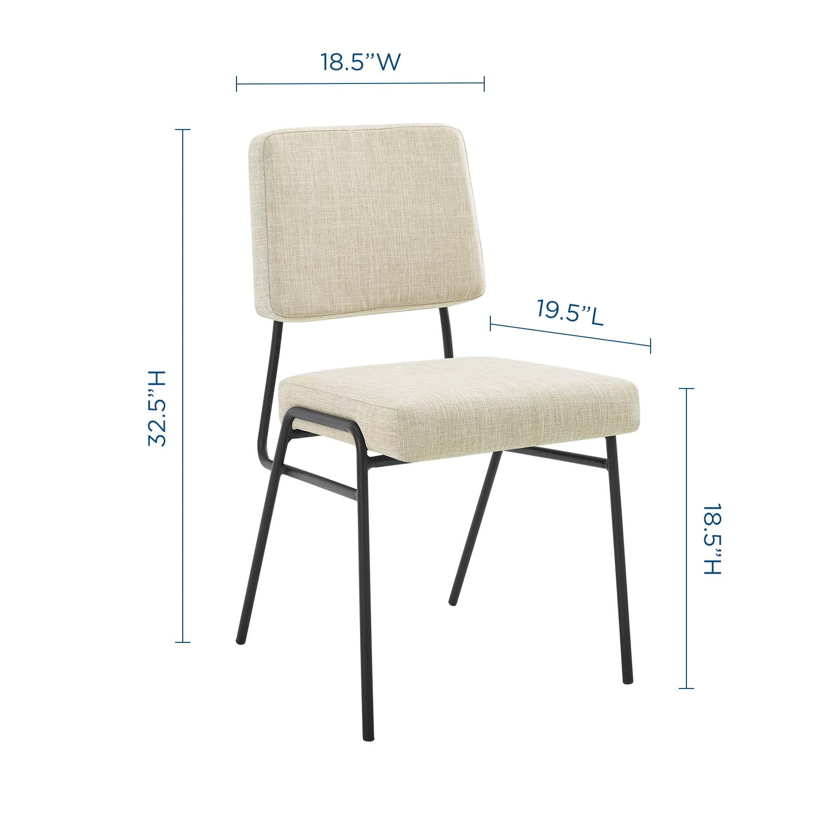 The blended aesthetics of mid-century modern style and the elegance of retro glamour are channeled to create the striking Craft Fabric Upholstered Dining Side Chair. Featuring dual densely padded foam cushions covered in soft and durable polyester fabric upholstery, this dining chair is a luxurious seating experience with an open, breathable design. The Craft Accent Chair sits on an eye-catching matte black stainless steel frame with flared rear legs and non marking foot caps elevating your dining room, lounge room, and office decor. Chair Weight Capacity: 330 lbs. Comes Fully Assembled.