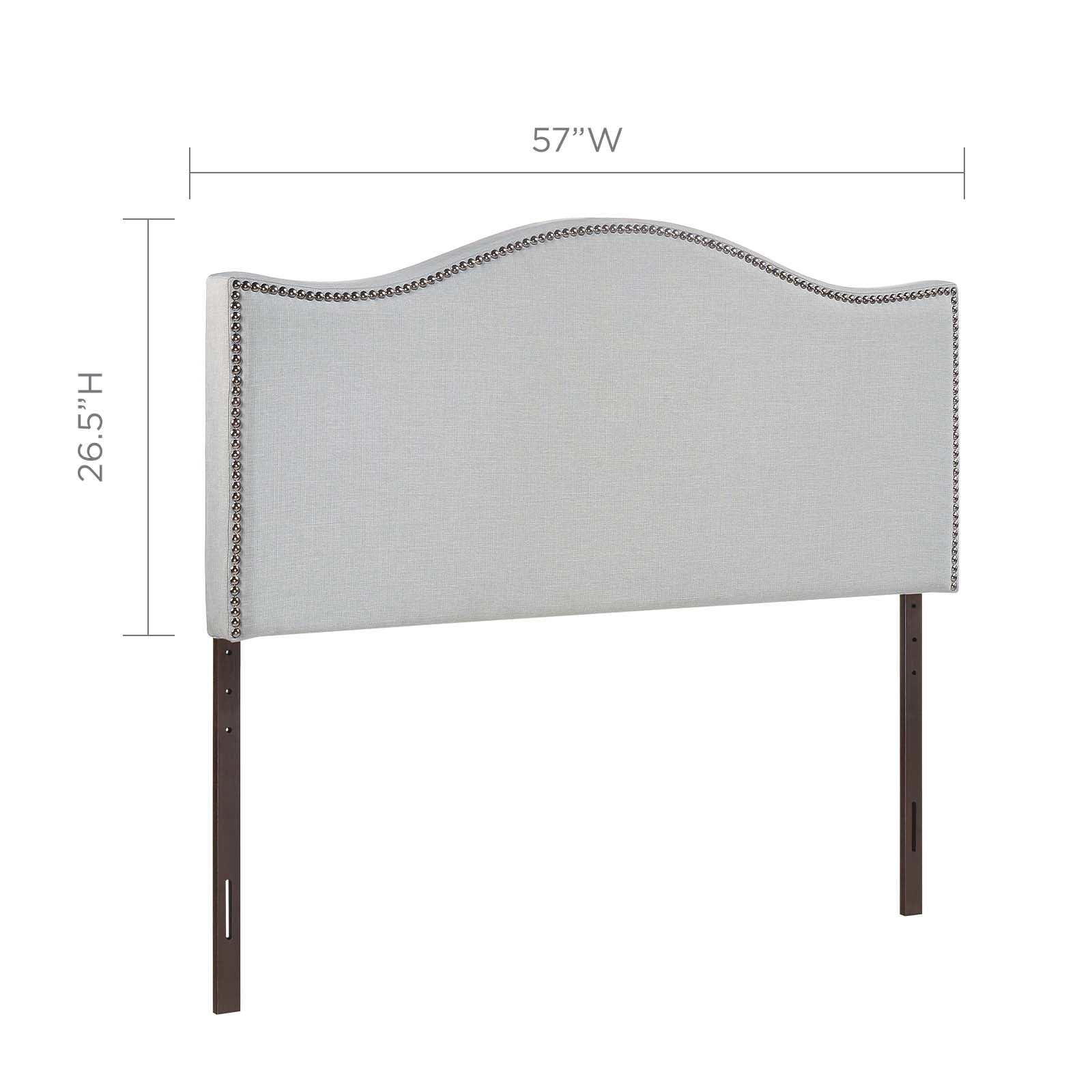 Wavy lines and a welcoming design make the Curl Full Headboard a selection of elegance. Upholstered in fine linen fabric with a fashionable nail button trim, Curl Full Headboard shows off the best of modern design with a fluid style that speaks volumes. Made from particle board with solid wood poles, Curl makes it easy to curl up to while pleasantly supported by this perfect centerpiece for most full beds.