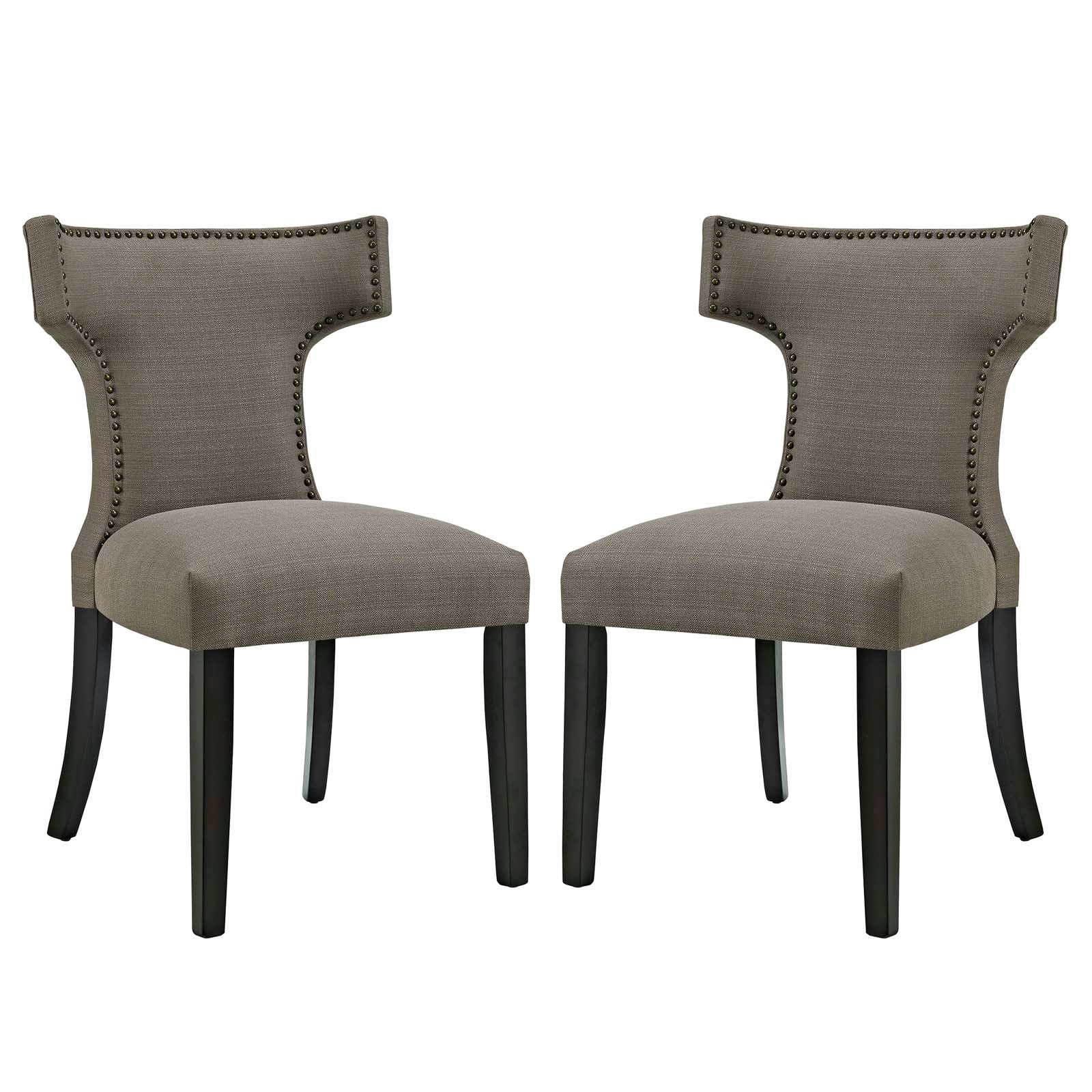 Transform your dining décor with the broadly designed Curve Dining Side Chair. Sweeping lines complement a minimalist shape for a chic look studded with nailhead trim. Curve comes generously padded with dense foam covered in polyester fabric, non-marking foot caps, and delivers just the right touch of finesse with tapered wood legs. Sporting an hourglass shape, Curve works well in a variety of dining room arrangements.