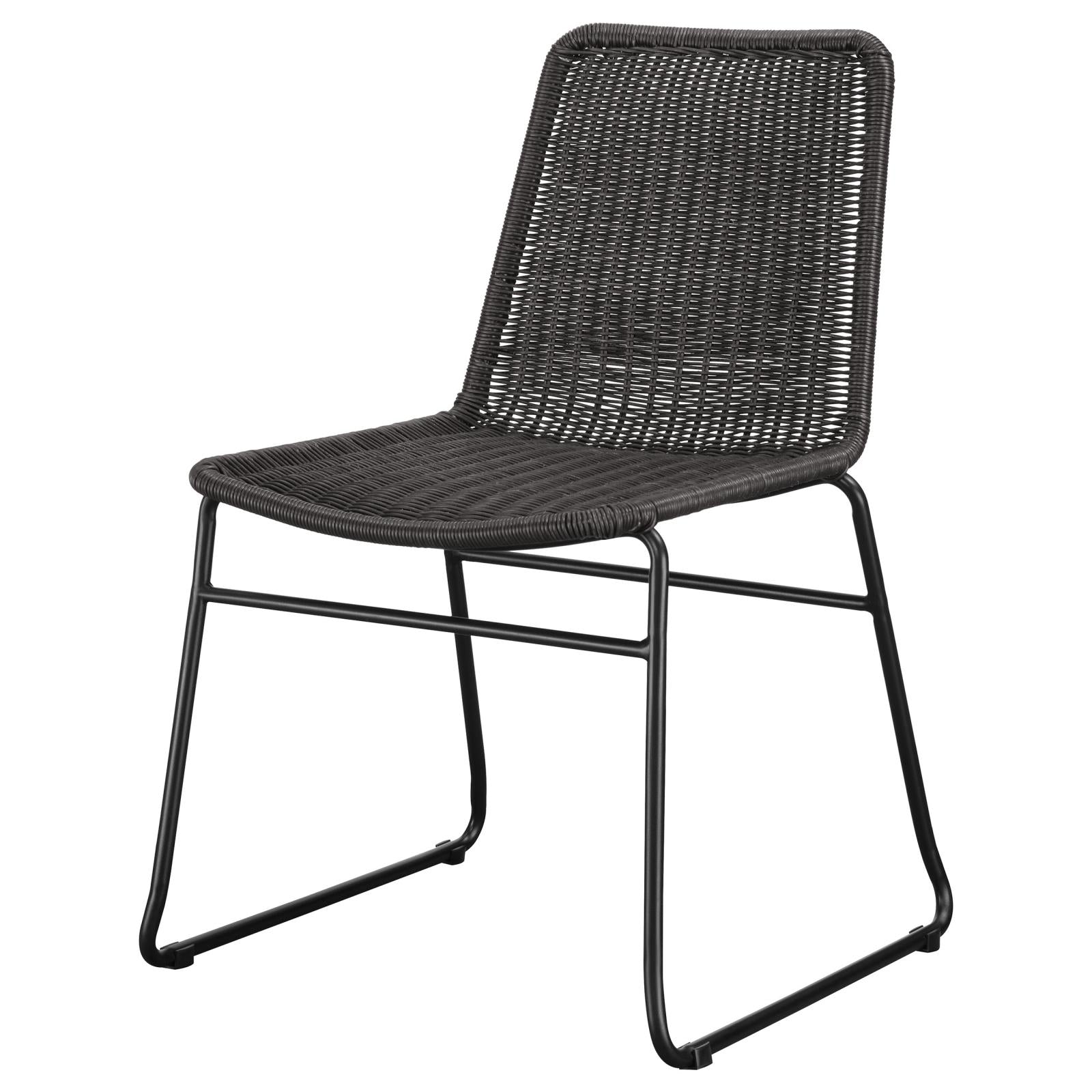 Place this transitional dining chair in a space for a hint of texture. Designed with a brown handwoven faux rattan across the seat, this charming chair offers a natural, boho-inspired vibe. Mounted on a black metal frame that offers all the support one needs, this lovely dining chair also offers vintage vibes with a flared base that lends an open, airy look. The sandy black slim frame also creates bold lines. Place this rattan-wrapped dining chair at a mid-century style dining table or allow it to grace a home office for extra guest seating.