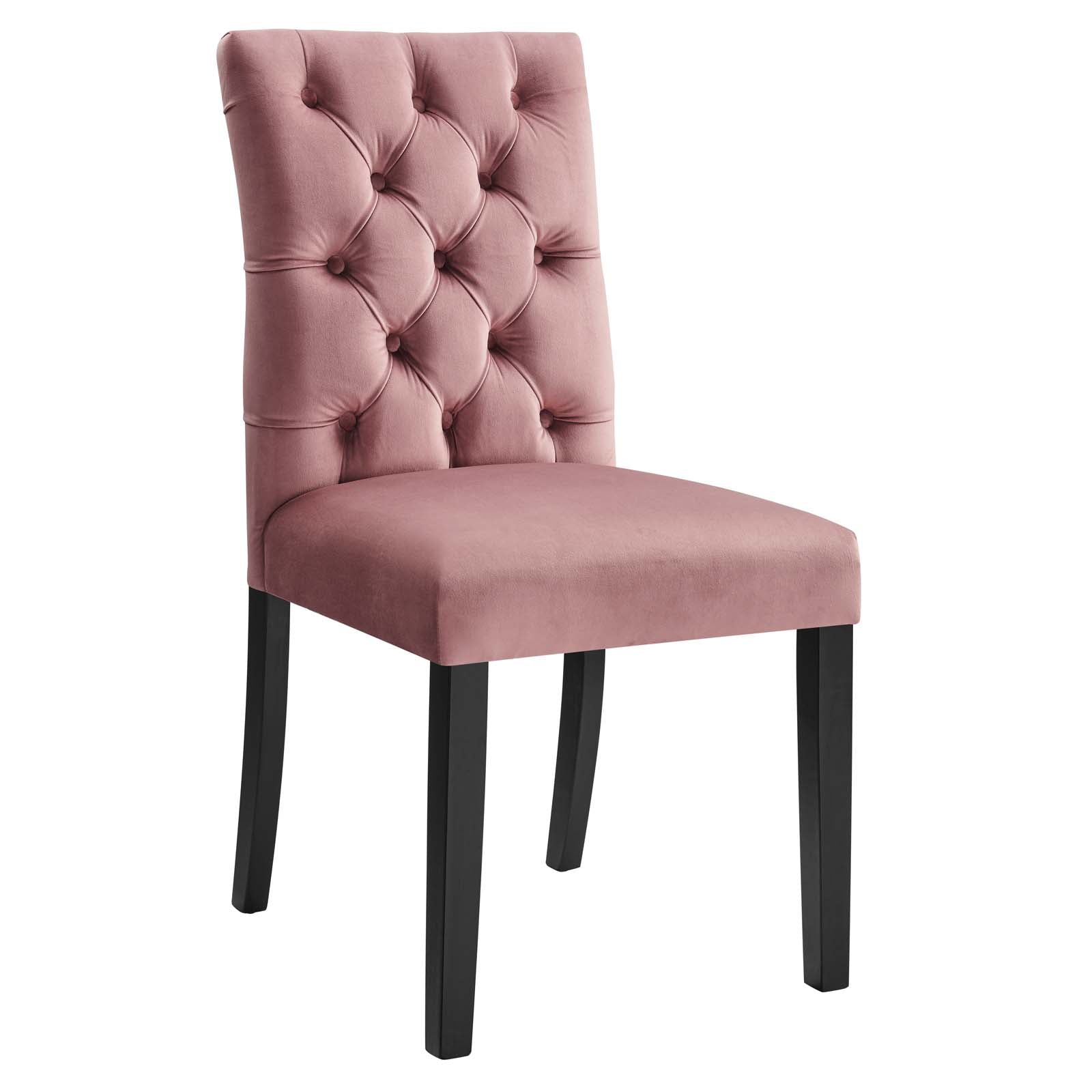 Bestow elegance with the Duchess Dining Chairs - Set of 2. Chic and luxurious, these dining chairs feature a stylish curvy form, richly tufted button back, stain-resistant performance velvet upholstery, and wood legs topped with non-marking foot caps. Dense foam padding and a sinuous spring support system grant a premium seating experience. Resonate grace and charm with a dining chair set perfect for the modern home.