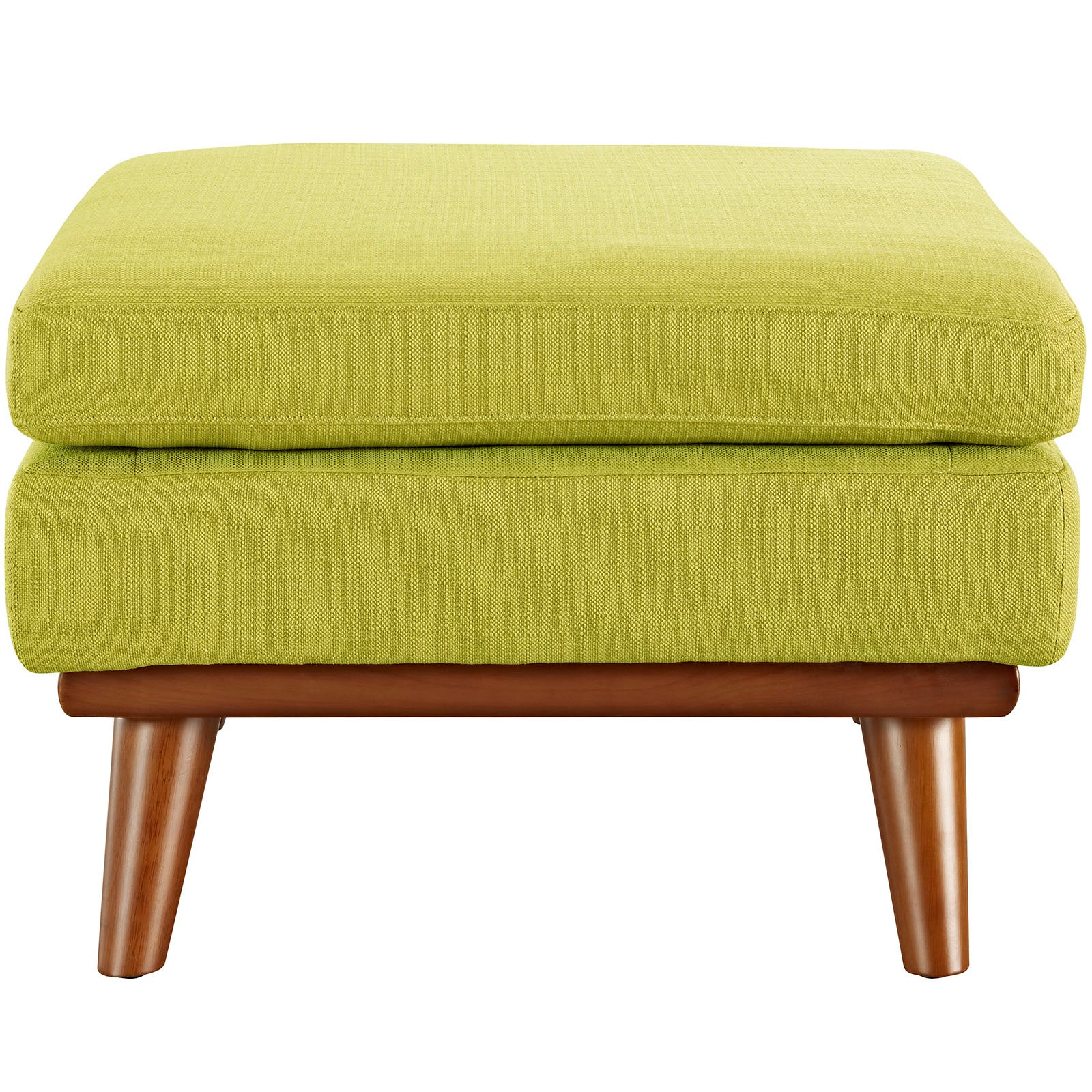 Gently sloping curves and plush cushion create a favorite lounging spot. Whether relaxing after a long day at work, settling in with coffee and brunch, or entering a spirited discussion with friends, the Engage ottoman is a welcome presence in your home. Rubberwood legs and frame supply a solid base to this quality upholstered fabric piece.