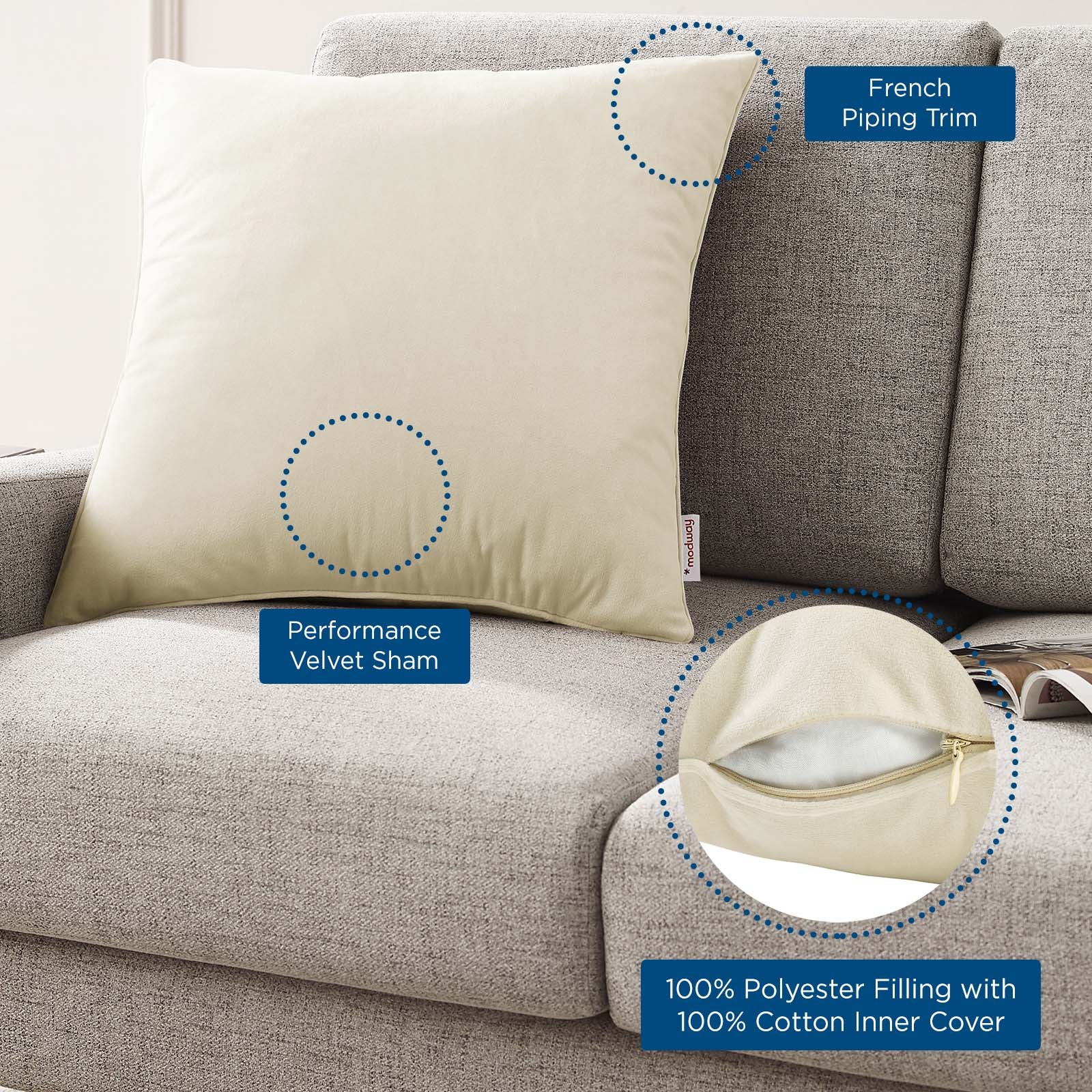 Incorporate a pop of color and texture into your home decor with the Enhance Performance Velvet Throw Pillow. With French piping along the edges, this accent pillow is perfect for a sofa, loveseat, armchair, bench, or bed. Bringing rich textiles to your living space or bedroom, this accent pillow wears a beautiful performance velvet sham that's soft to the touch. The insert of this square pillow is stuffed with plush polyester filling and complete with a 100% cotton inner cover.