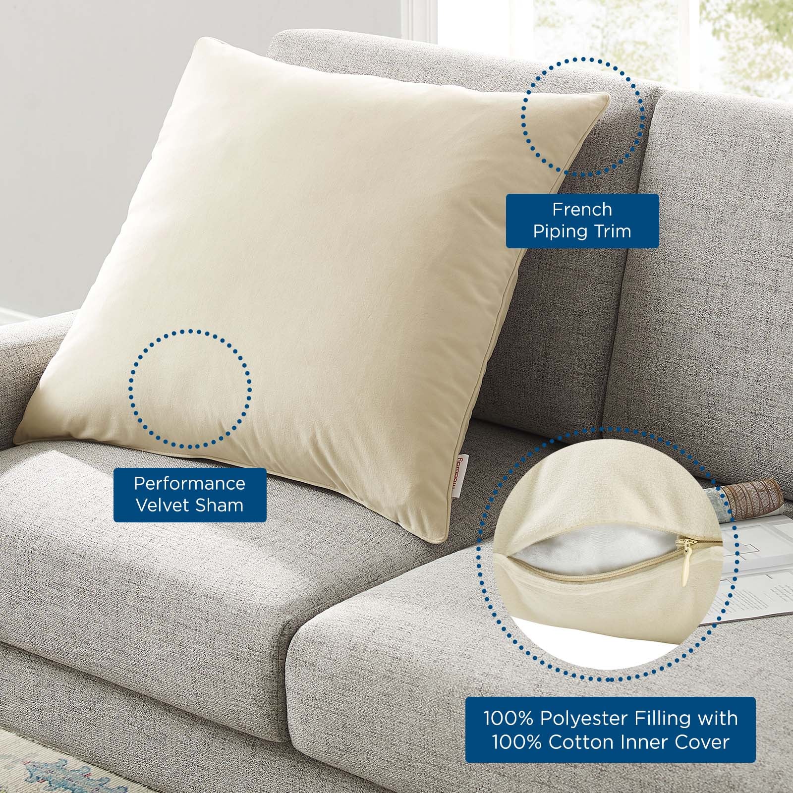 Incorporate a pop of color and texture into your home decor with the Enhance Performance Velvet Throw Pillow. With French piping along the edges, this accent pillow is perfect for a sofa, loveseat, armchair, bench, or bed. Bringing rich textiles to your living space or bedroom, this accent pillow wears a beautiful performance velvet sham that's soft to the touch. The insert of this square pillow is stuffed with plush polyester filling and complete with a 100% cotton inner cover.
