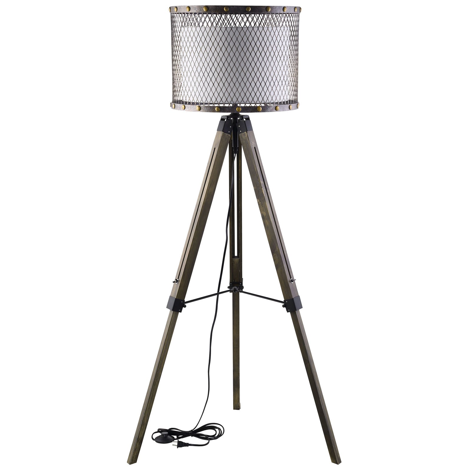Liberate the light of plenty with the Fortune Floor Lamp. Escape the fetter and illuminate to abundance with a piece that artfully blends steel, fabric, and pine wood elements. Fortune’s external mesh casing is made of iron-tinted solid steel and brass nails for added effect on the trim. The internal drum shade is made of cream-colored fabric. Fortune is positioned on a solid pine wood and black coated steel easel-style tripod stand that further enhances the creativity of this piece. Fortune is well suited for rustic, ranch, vintage modern, industrial modern, and other transitional décors.