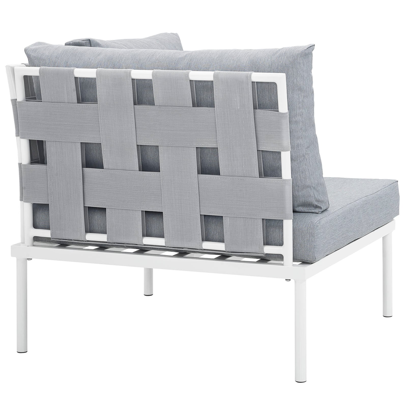 Engage life with Harmony Outdoor Patio Corner Sofa. Enjoy casual conversation under the open sky with an all-weather waterproof outdoor sofa chair from a versatile furniture set that delivers an exceptional outdoor porch, patio, balcony or garden experience. An exceptional modern outdoor furniture set that exceeds expectations, Harmony Patio Sofa Chair comes with silk polyester seat back weave, square powder coated aluminum bases, and non-marking foot caps. An outside sectional corner sofa that arranges according to the spontaneous needs of your guests, set your sights on open and inspired moments with the Harmony Outdoor Patio Collection.