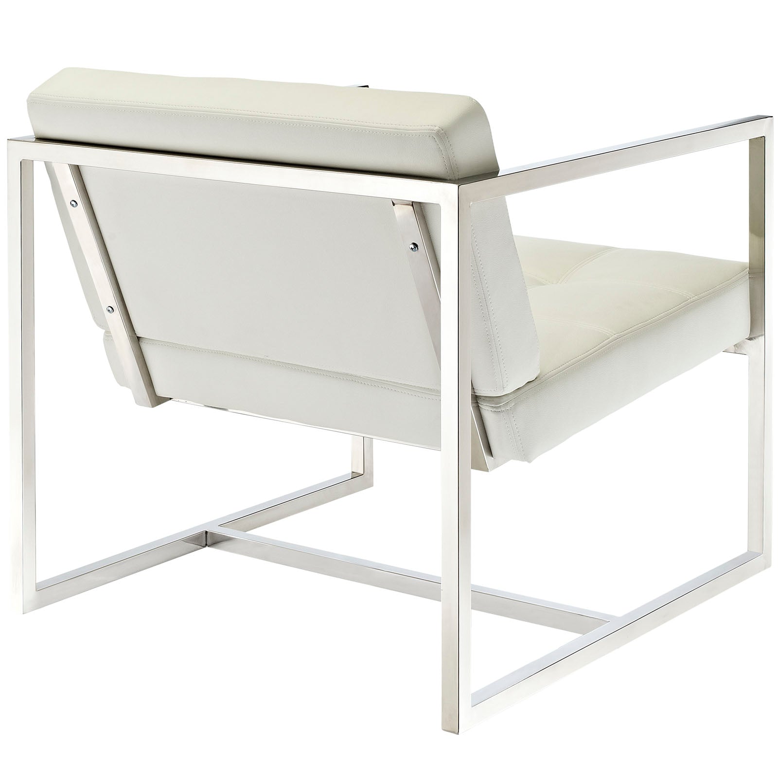 Embrace mid-century elements with this welcoming reception seating chair. Hover is a modern chair, but not for the typical reasons. Its padded vinyl buttoned seat and back and geometric stainless steel frame truly develop space and form in an innovative way. Hover is perfect both for those offices looking to impress new clients and for anyone who ever dreamed of stationary flight.