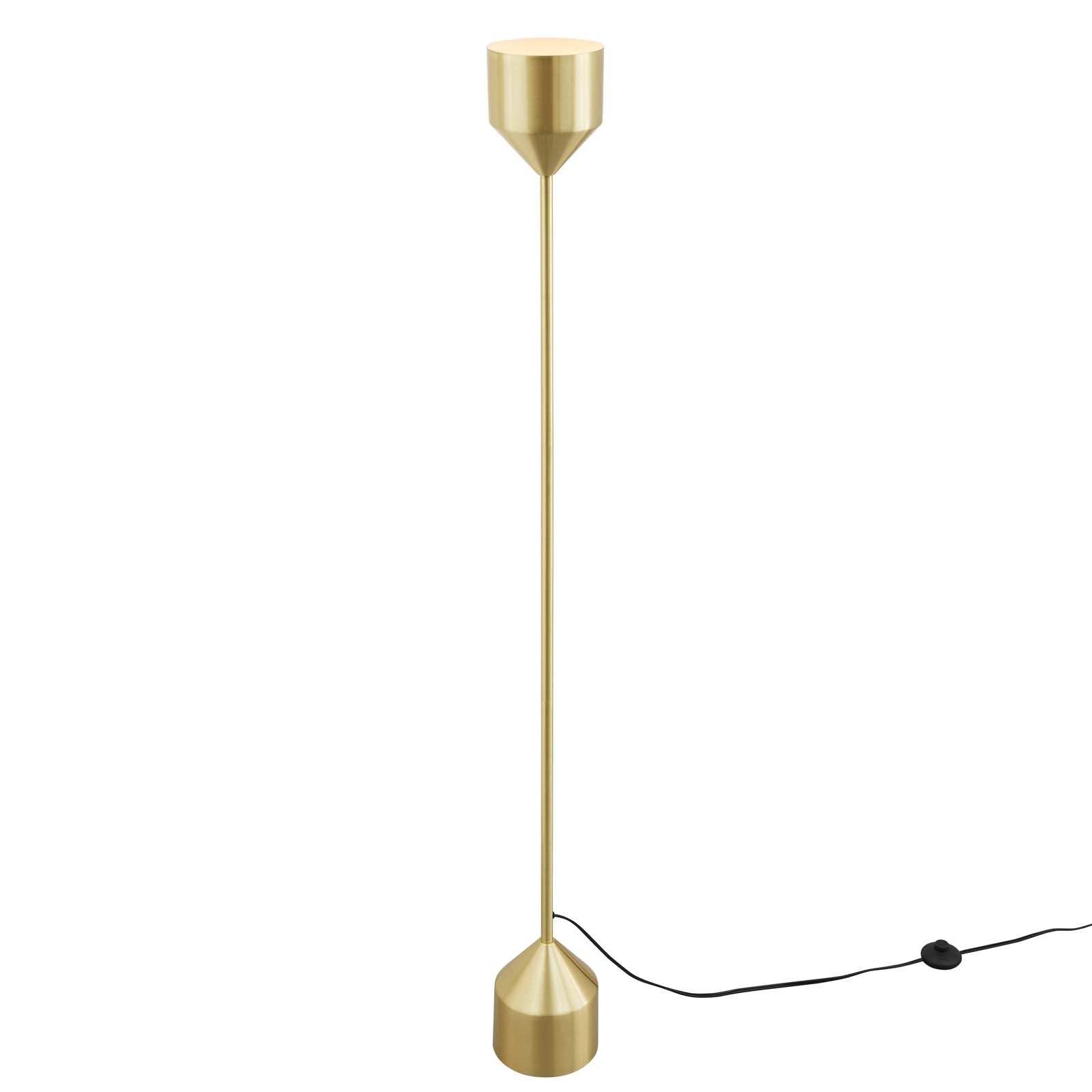 The sleek and confident profile of the Kara Standing Floor Lamp brims with illumination and vibrancy, day or night, in your bedroom, dining room, or living room. This modern floor lamp stands tall in contemporary, minimalist, or eclectic decors. The streamlined silhouette makes this floor lamp a practical and polished beacon of light in small spaces or apartment settings. This floor lamp emanates elegance and symmetry with the cone-shaped shade mirrored by the matching base, connecting at the peaks by a single rod. The Kara Floor Lamps requires 1 E26 bulb, 40W max, or LED equivalent (not included). Equipped with a power cord with an On/Off foot switch.