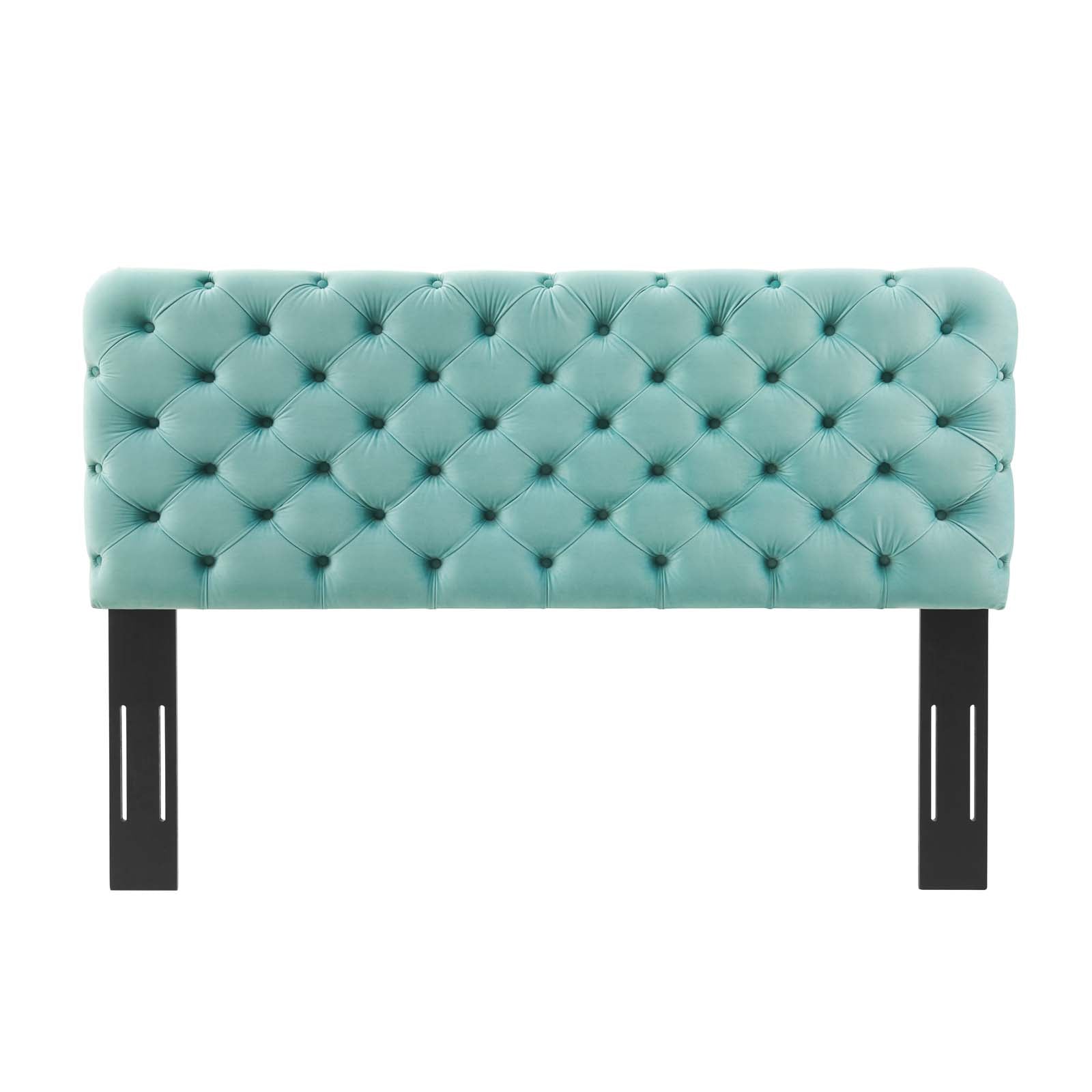 A beautiful addition to a master bedroom or guest bedroom, the Lizzy Tufted Performance Velvet is a stunning backdrop for a variety of bedding and sham styles. Featuring deep button tufting in a diamond pattern, this twin size headboard is padded in dense foam and upholstered in stain-resistant performance velvet granting ultimate comfort while sitting up and relaxing in bed. With sturdy metal legs, this adjustable headboard is complete with three mounting positions to fit almost any twin bed frame. Assembly required.