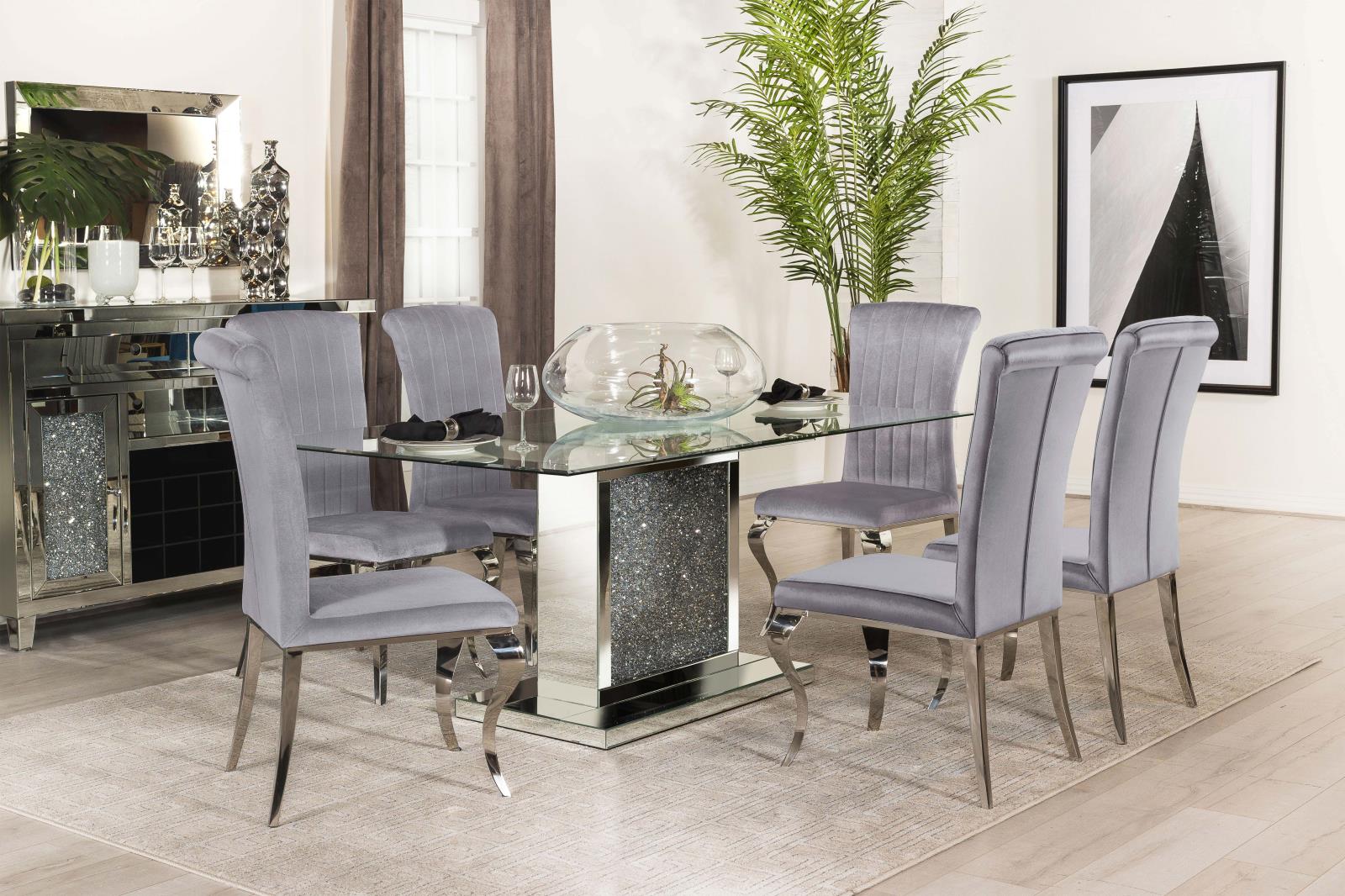 Marilyn 5-piece Rectangle Pedestal Dining Room Set Mirror and Grey