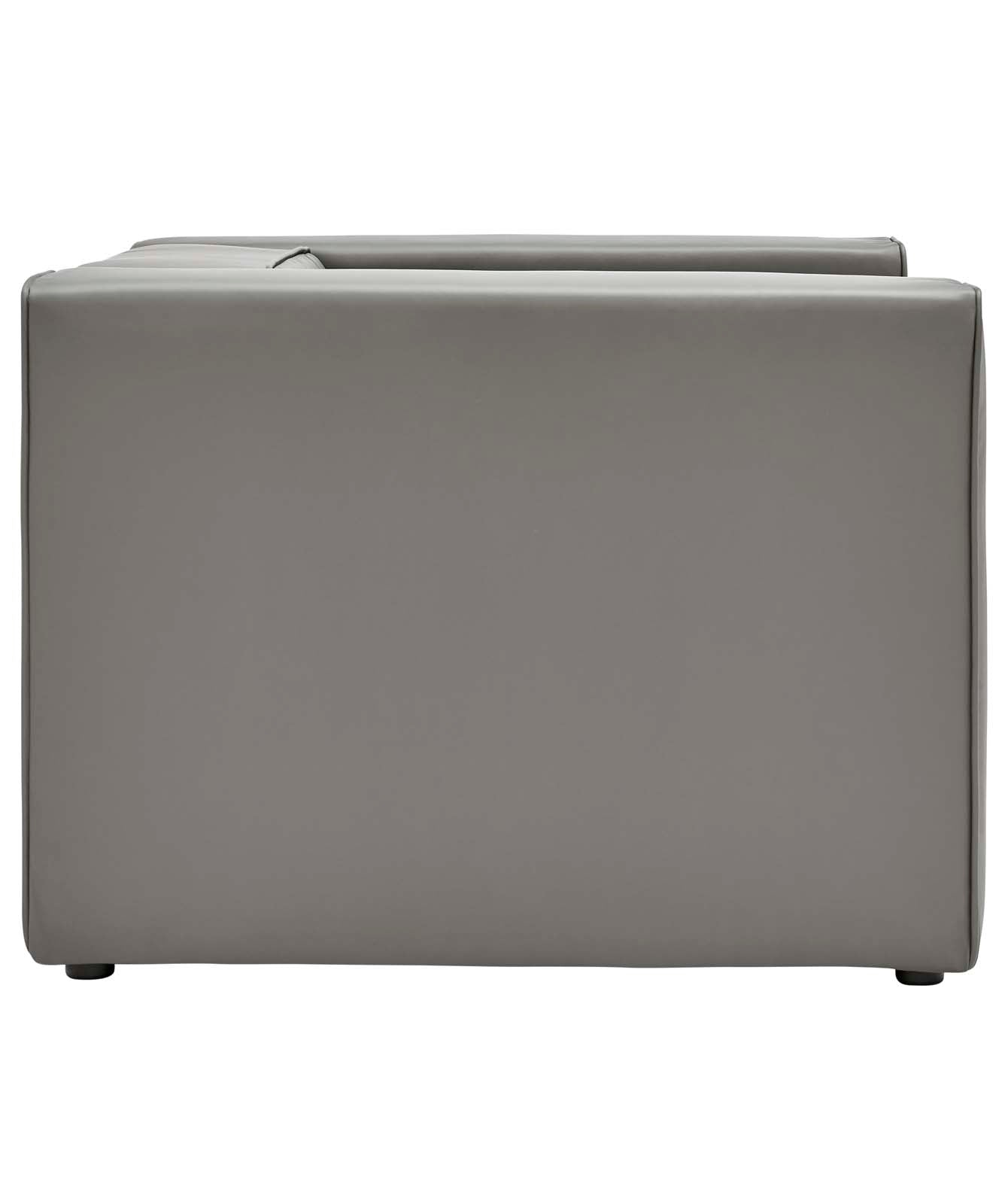 Kick back and relax with the Mingle Vegan Leather Armchair. Designed to wash away the hindrances that obstruct visual space, Mingle comes expansively designed with generous seating and dense foam padding that allows for just the right amount of giving. Mingle easily positions according to the needs of the moment and features rich vegan leather upholstery with elegant piping and plastic legs for steady support. Host animated living or lounge room get-togethers with a modular sectional seating assortment perfect for contemporary modern décors.