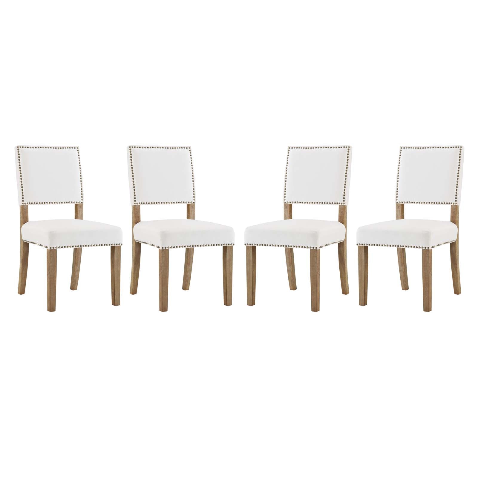 Update your décor with the Oblige Dining Side Chair. Boasting soft velvet polyester upholstery, fine nailhead trim, no sag spring support, comfortable padded cushion, and solid natural wood frame, Oblige is a chair overflowing in both quality and design. Complete with non-marketing foot caps, introduce a refreshing modern farmhouse look with this solidly made dining chair. Nailhead Trim Color: Ivory - Antique Copper, Other Colors - Polished Silver Accent.
