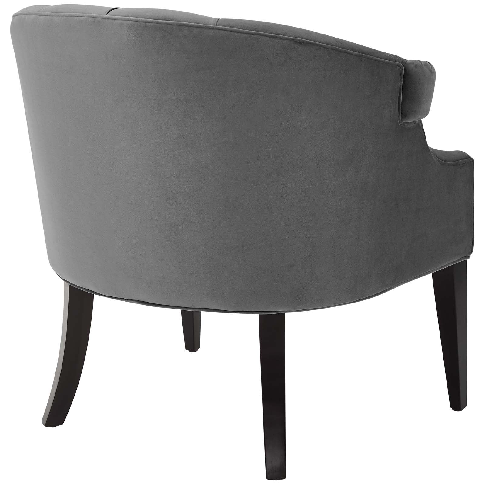 Redefine luxury lounge with the rich artistry of Precept Accent Armchair. Precept's deep button tufting covers the surrounding embrace of a curved back and vintage silhouette. Soft, stain-resistant performance velvet upholstery covers dense foam padding to produce a premium seating experience that enhances any room. Precept's diamond tufted pattern adds visual depth to this plush velvet accent chair perfect for your living room, bedroom, entryway, lounge room or waiting area. Seated atop four tapered birch wood legs with non-marking foot caps, Precept enhances the glamour of any home.