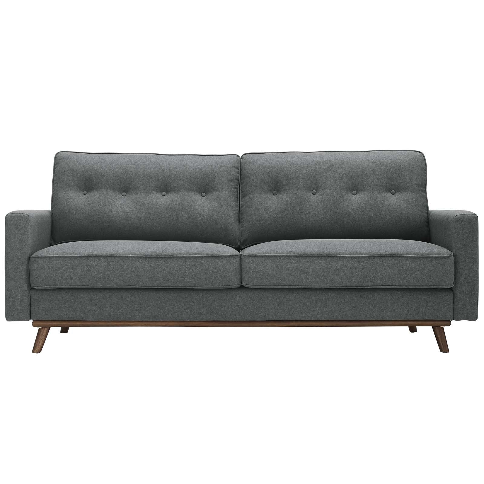 Experience modern-day convenience with Prompt. A stylish addition to your living room, office, or small living space, Prompt is a cozy mid-century modern sofa made with dense foam padding, upholstered in soft polyester fabric, and positioned on a walnut stained wood frame with splayed legs and non-marking foot caps. With a comfortable yet tailored profile, this living room sofa ships directly to your home or apartment in a compact box, and easily unpacks to become a favorite lounge spot in your home. Prompt beckons guests to sit and stay a while with linear button tufting and subtle welting that grants this modern sofa an approachable appeal. Sofa Weight Capacity: 1102 lbs.