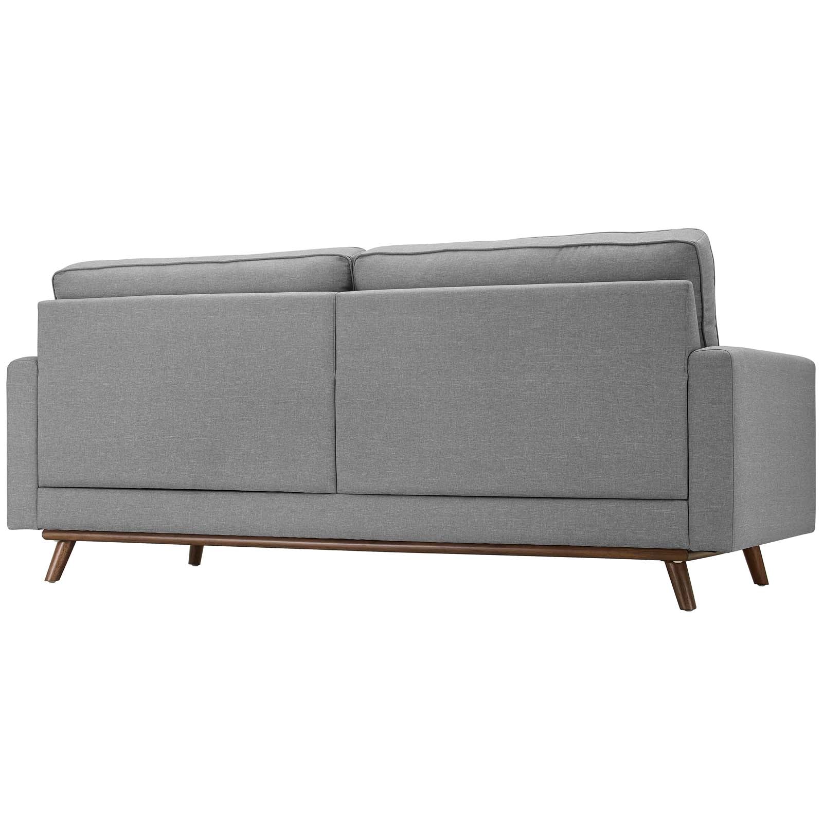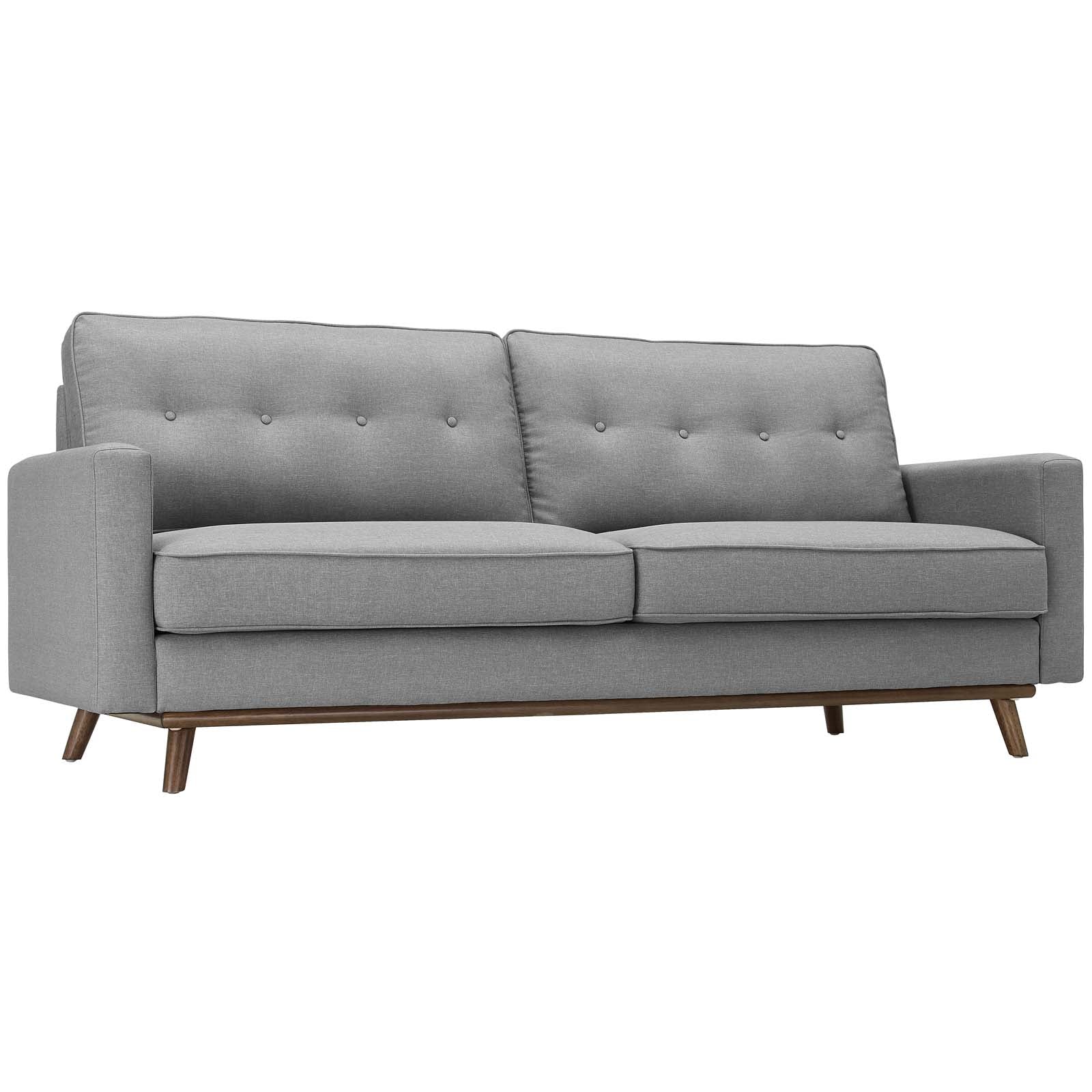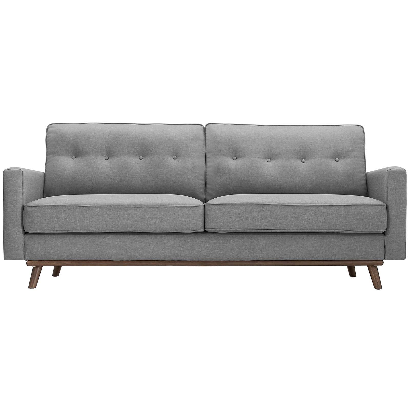 Experience modern-day convenience with Prompt. A stylish addition to your living room, office, or small living space, Prompt is a cozy mid-century modern sofa made with dense foam padding, upholstered in soft polyester fabric, and positioned on a walnut stained wood frame with splayed legs and non-marking foot caps. With a comfortable yet tailored profile, this living room sofa ships directly to your home or apartment in a compact box, and easily unpacks to become a favorite lounge spot in your home. Prompt beckons guests to sit and stay a while with linear button tufting and subtle welting that grants this modern sofa an approachable appeal. Sofa Weight Capacity: 1102 lbs.