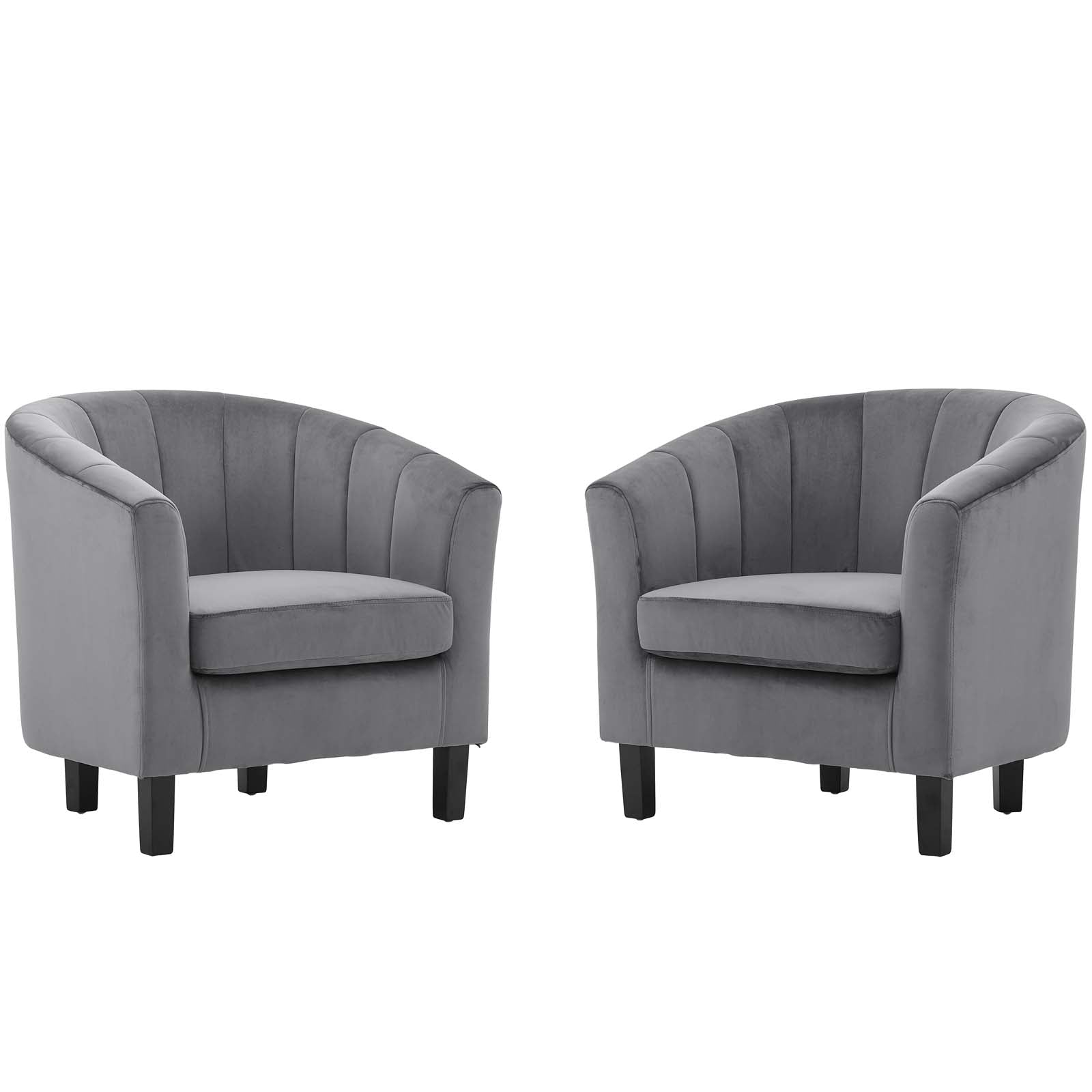 A fresh outlook on a familiar classic, Prospect Performance Velvet Armchair Set of 2 brings intrinsic luxury to your living space. This barrel back armchair set comes upholstered in stain-resistant performance velvet fabric, and boasts chic channel tufting, updating the Chesterfield-inspired profile with retro modern design elements. The densely padded removable seat and backrest grant approachable comfort that beckons guests to sit and stay a while.