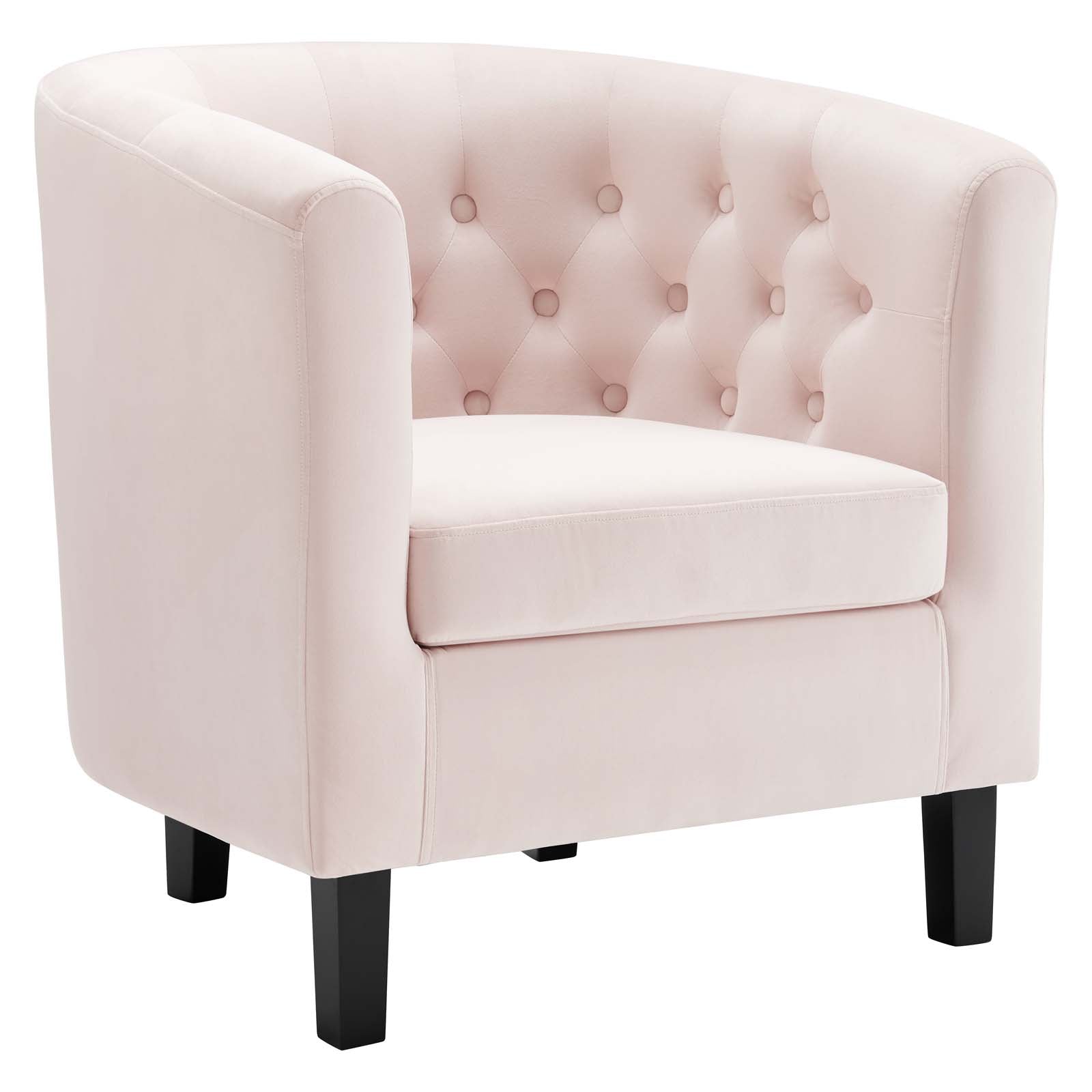 Intrinsically luxurious, Prospect is a throwback to the classic Chesterfield design, while delivering an engaging modern look filled with passion and drive. Button tufting and sweeping curves blend to form a contemporary lounge piece that all will be drawn to. This cozy armchair with espresso stained wood legs and non-marking foot caps features comfortable foam padding and soft, stain-resistant performance velvet polyester upholstery.