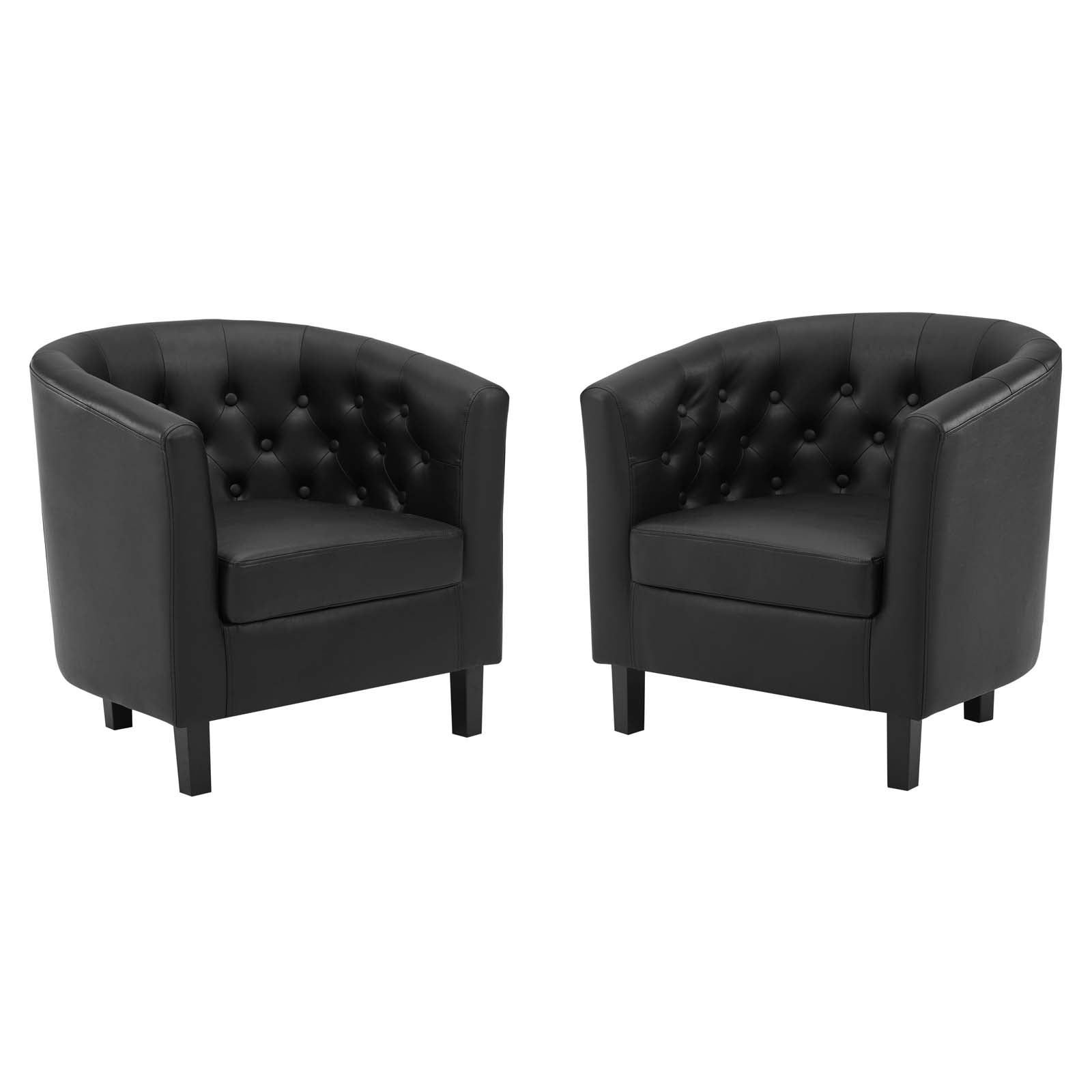Intrinsically luxurious, Prospect Armchair Set of 2 hints at a classic Chesterfield design before blending with a modern twist for a new look to love. Button tufting and sweeping curves mesh to form a contemporary lounging piece that all will be drawn to. This cozy armchair features comfortable foam padding and faux leather materials that finish off an artistic piece with eye-catching appeal.