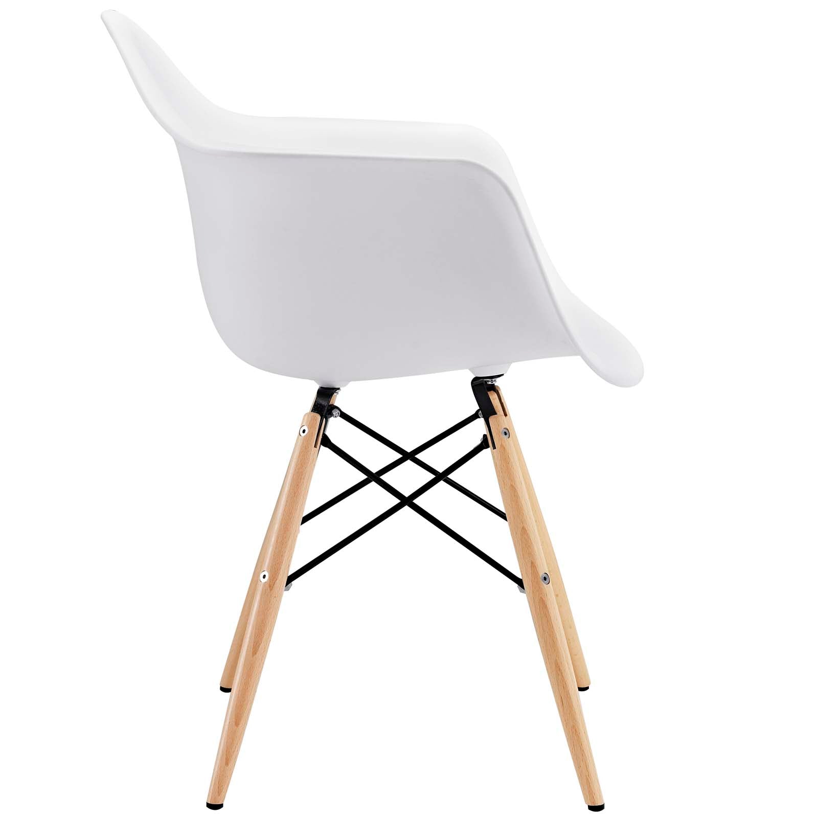 Wood Pyramid Armchairs are crafted out of molded plastic for the seat and a solid wood "pyramid" base. Comfortable and versatile, this chair can be used to décorate any space.