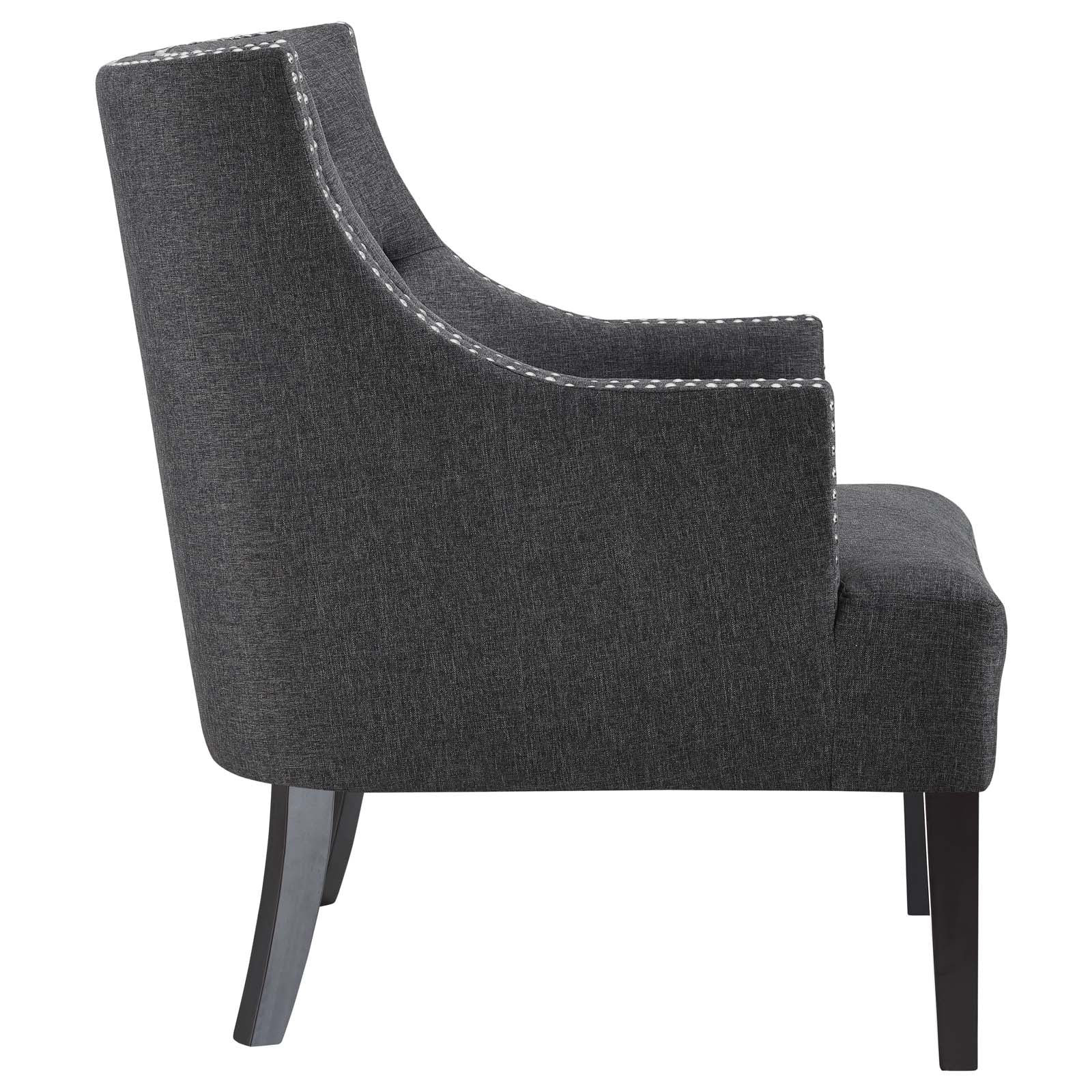 Transform your décor with the Regard Leisure Armchair. Decoratively fashioned with polished nailhead trim and fine tufting, Regard comes generously padded with richly textured polyester upholstery and spacious seat design. Supported by tapered black wood legs with flared back legs and non-marking foot caps, enjoy reading with a cup of tea or coffee while gracefully complementing your living or lounge room décor.