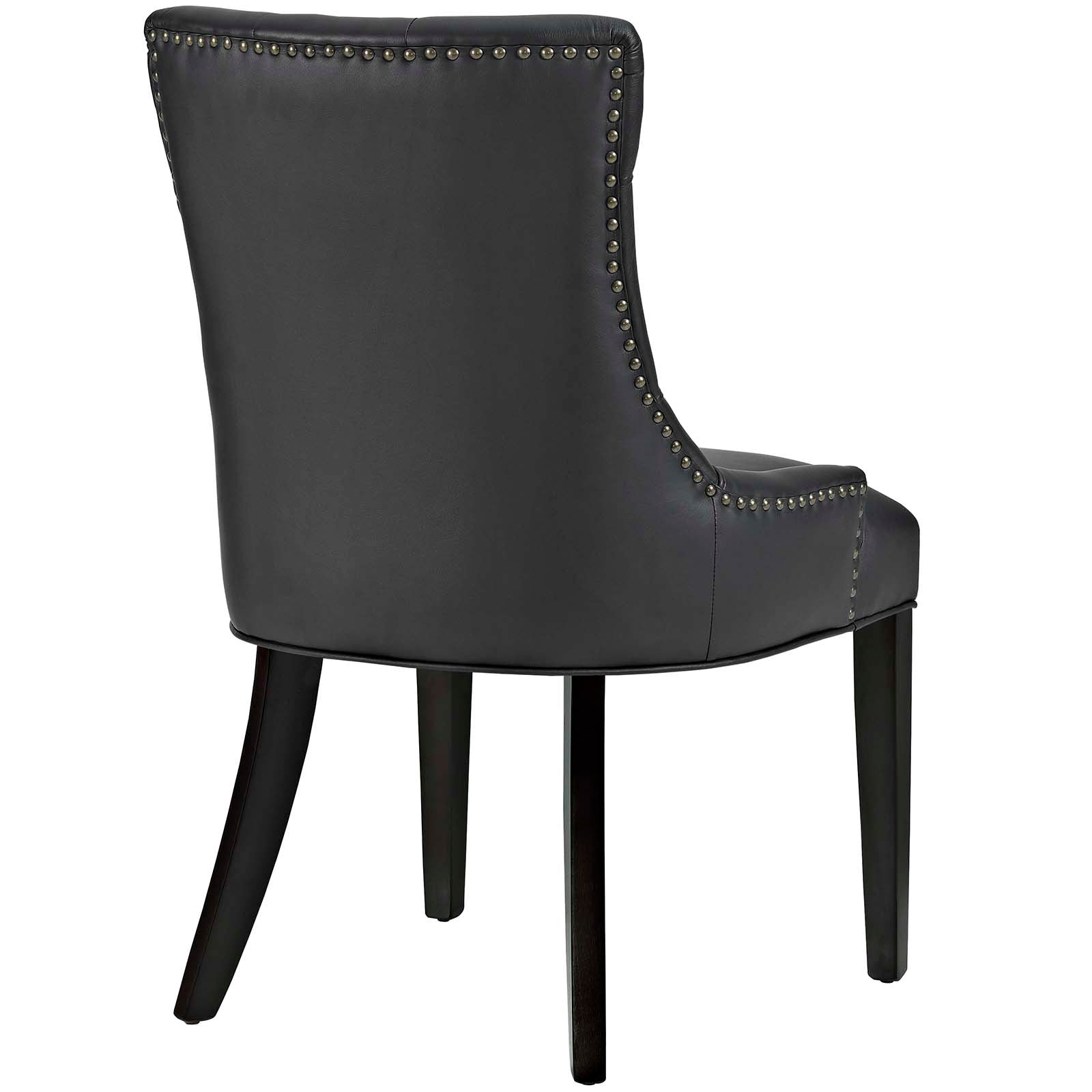 Transport your decor to a simpler time with the Regent Dining Side Chair. Fashioned with a chic and elegant look, this dining chair features finely tufted buttons, studded nailhead trim, and a regal seat generously padded in foam and upholstered in durable vegan leather. This comfortable chair comes with non-marking foot caps, tapered wood legs, and works well in both modern and traditional dining rooms.