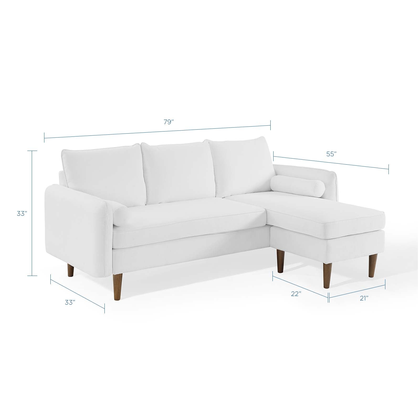 Give new vitality to your living space with the Revive Upholstered Fabric Right or Left Sectional Sofa Sectional Sofa. With a comfortable yet tailored profile and two bolster pillows, Revive Living Room Couch beckons guests to sit and stay a while. Dense foam padding and a pocket coil spring system provide a luxurious seating experience. Soft polyester fabric upholstery grants this three-seater sectional sofa with a right or left facing chaise an approachable appeal that’s echoed by its calming color, clean lines, and splayed and tapered wood legs with non-marking foot caps. The Revive Right-Facing Sofa has a built in ottoman that allows for a variety of comfortable lounging combinations and accommodates a multiple decor styles in your living room, lounge room, or other seating area. Weight Capacity: 900 lbs.